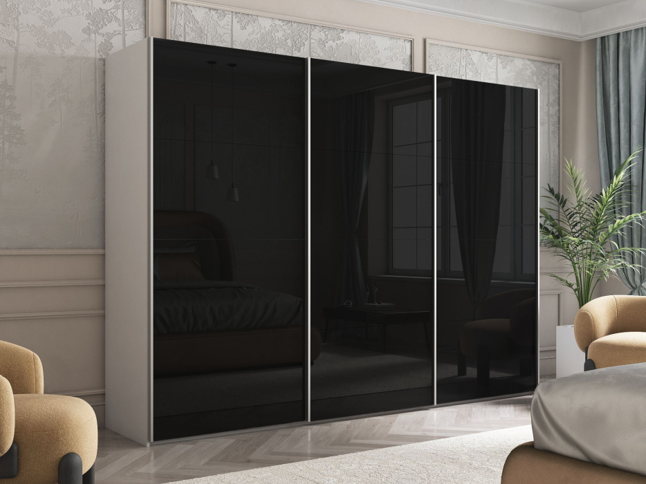 Отзывы о Столплит Шкаф Эста трио Стекло черное 2400 х 3000 х 660 Белый снег