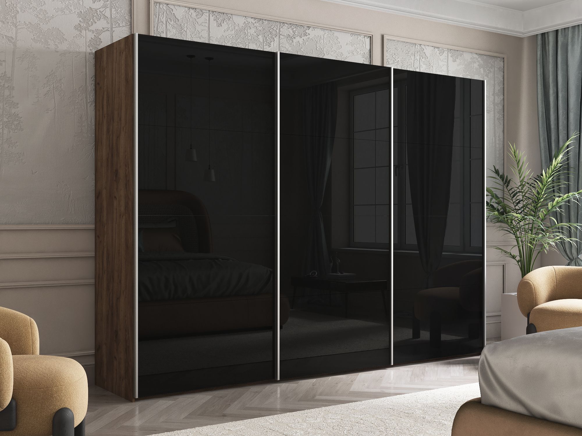 Отзывы о Столплит Шкаф Эста трио Стекло черное 2400 х 3000 х 660 Дуб/крафт/табак