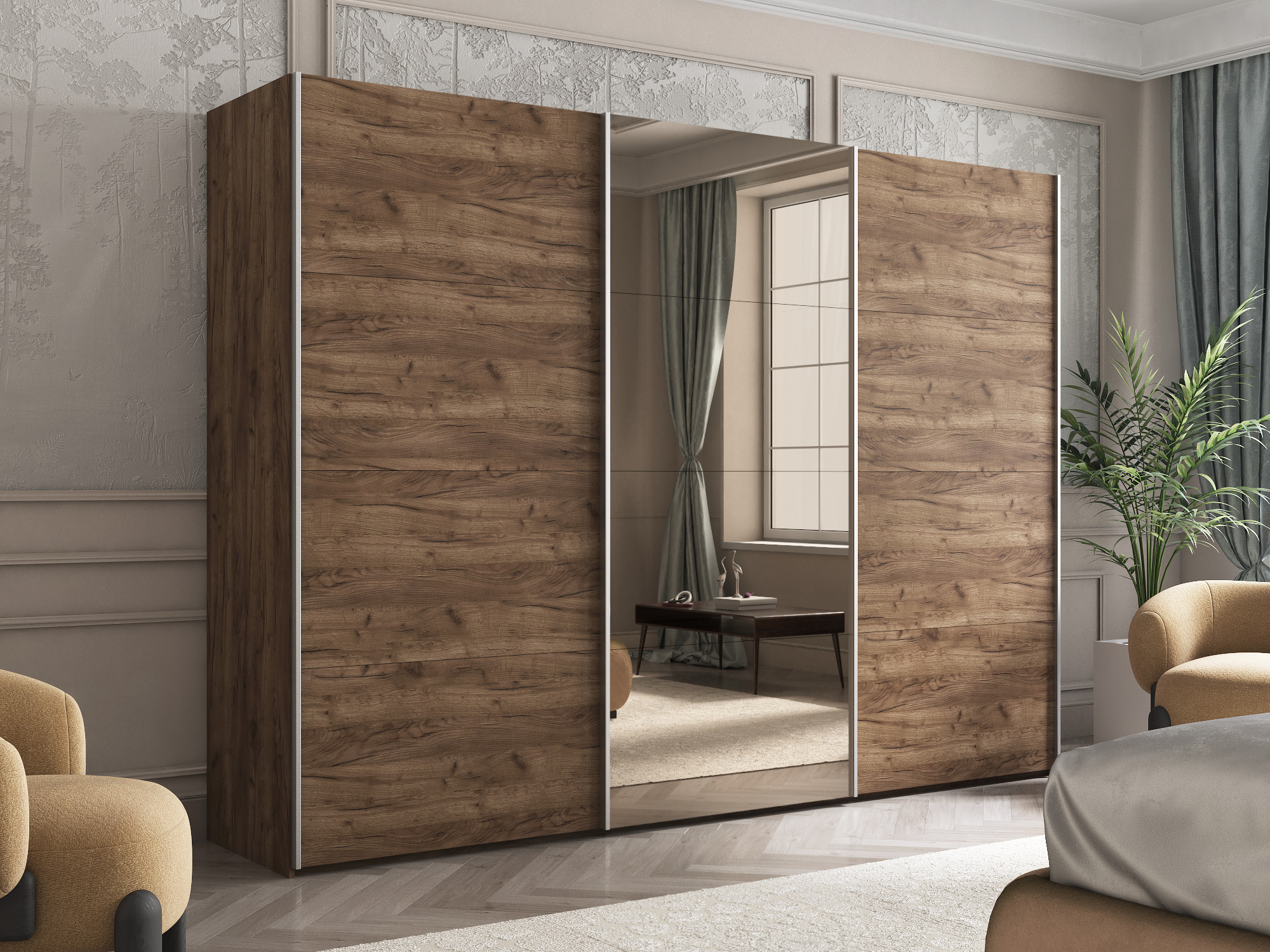 Отзывы о Столплит Шкаф-купе Эста ДСП+Зеркало+ДСП 300х66х240 Дуб/крафт/табак