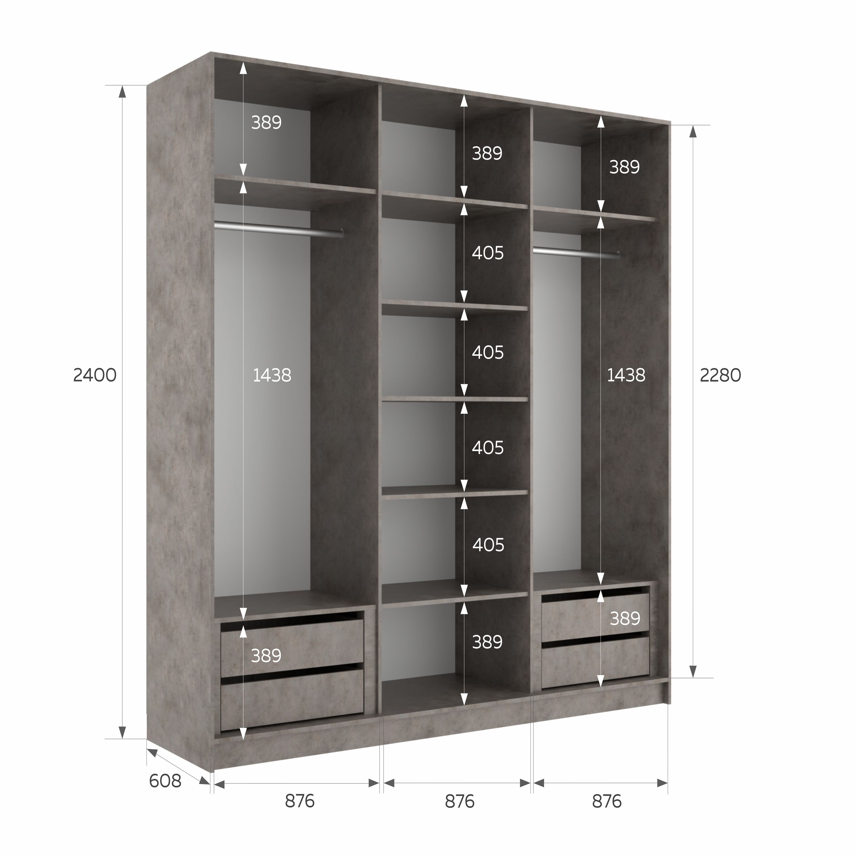 Отзывы о Столплит Шкаф-купе Эста Зеркало+Зеркало+Зеркало 270х66х240 Бетон серый
