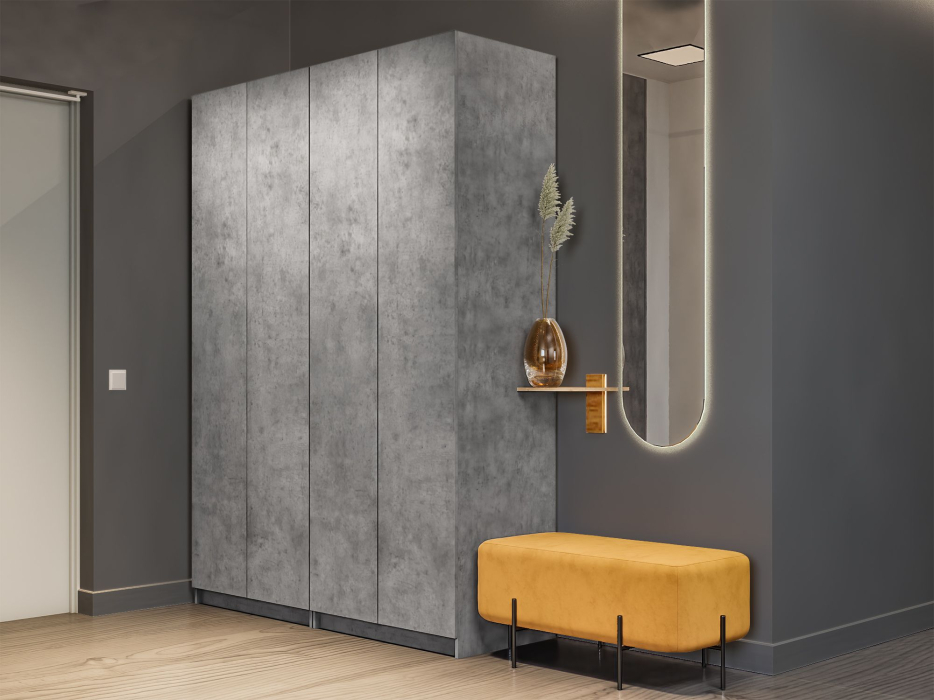 Отзывы о Столплит Распашной шкаф Локер 800+800 (Гармошка с системой Push to Move/Правый) с полками и ящиками слева Бетон