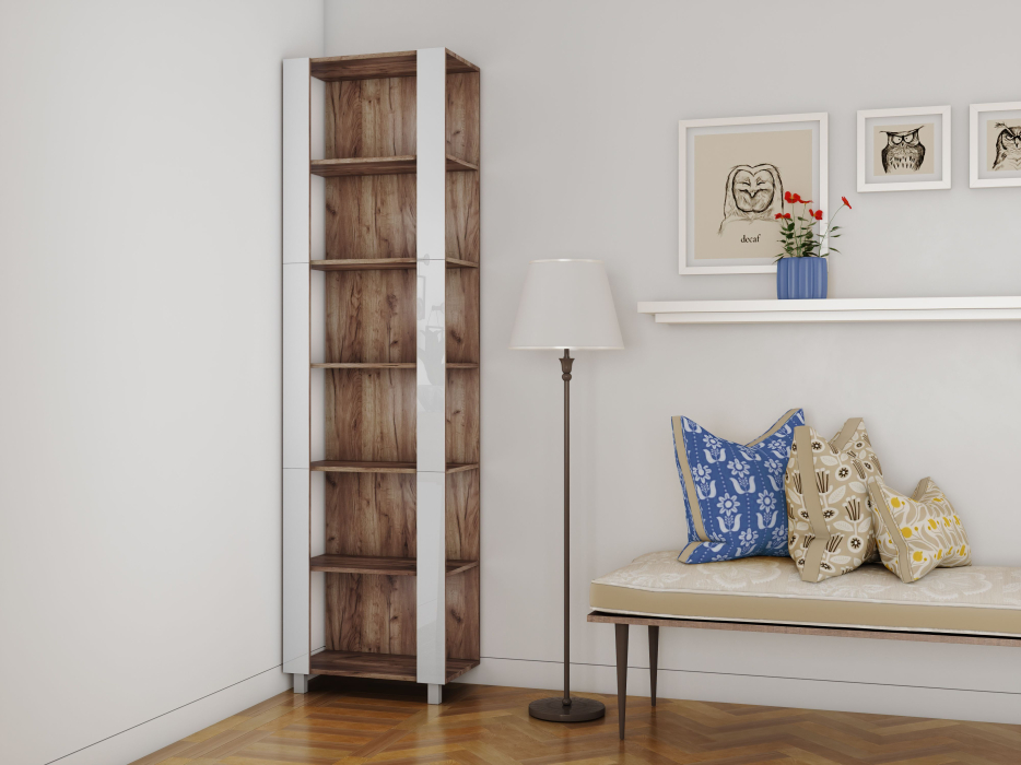 Отзывы о Столплит Стеллаж модульный Универсальный 35х44х220 Белое стекло Дуб/крафт/табак