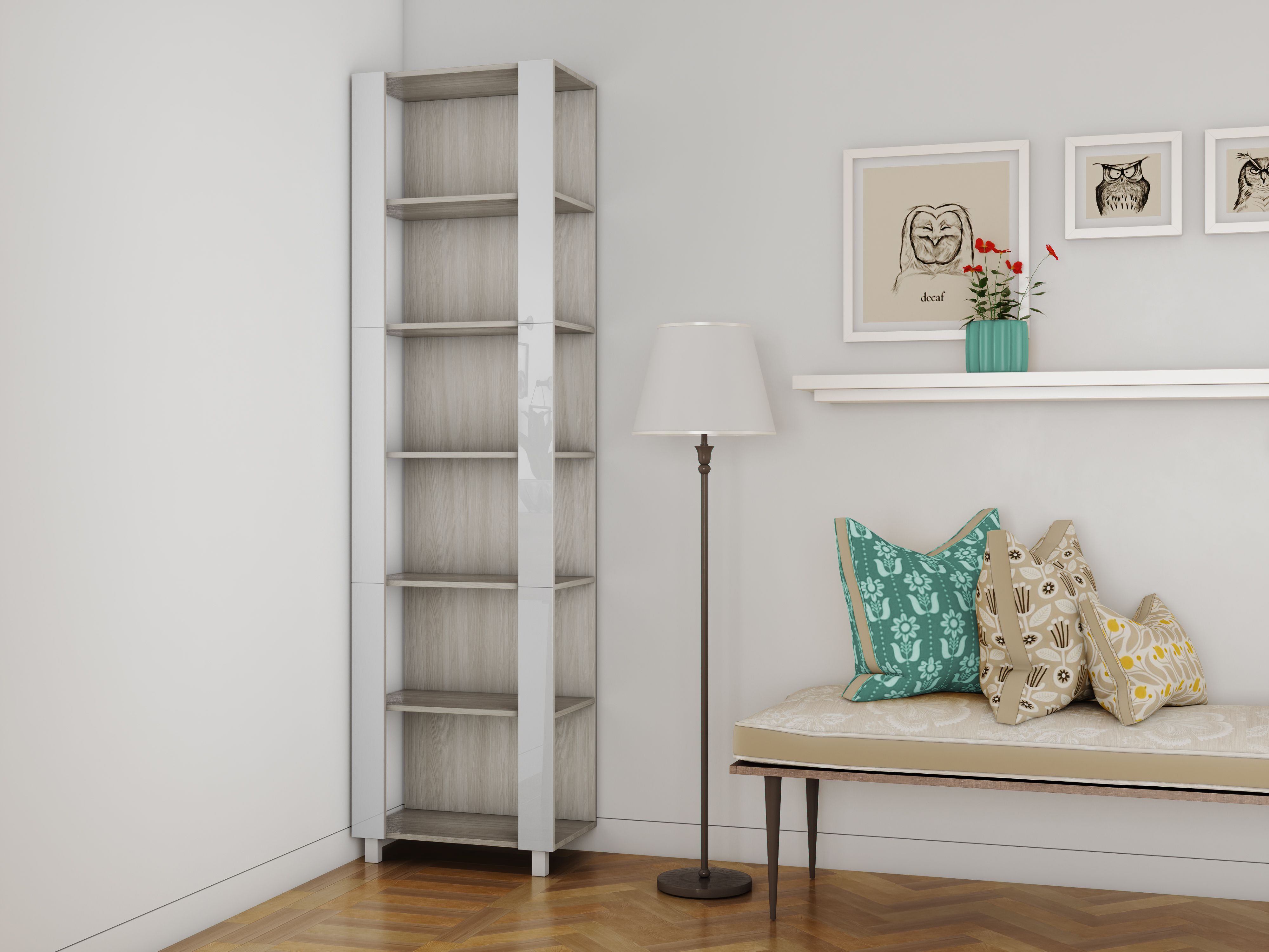 Отзывы о Столплит Стеллаж модульный Универсальный 35х44х220 Белое стекло Ясень шимо светлый