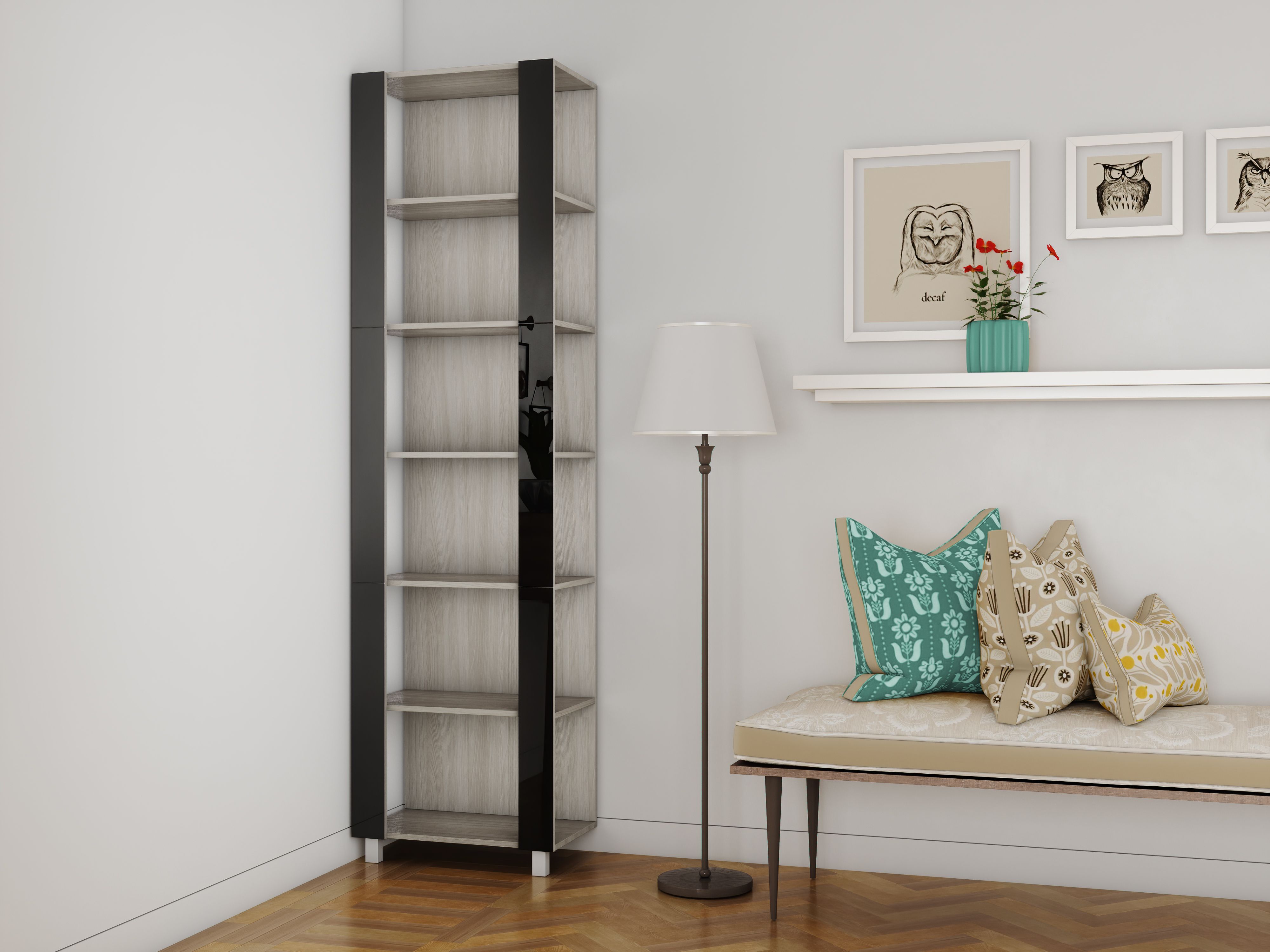 Отзывы о Столплит Стеллаж модульный Универсальный 35х44х240 Черное стекло Ясень шимо светлый