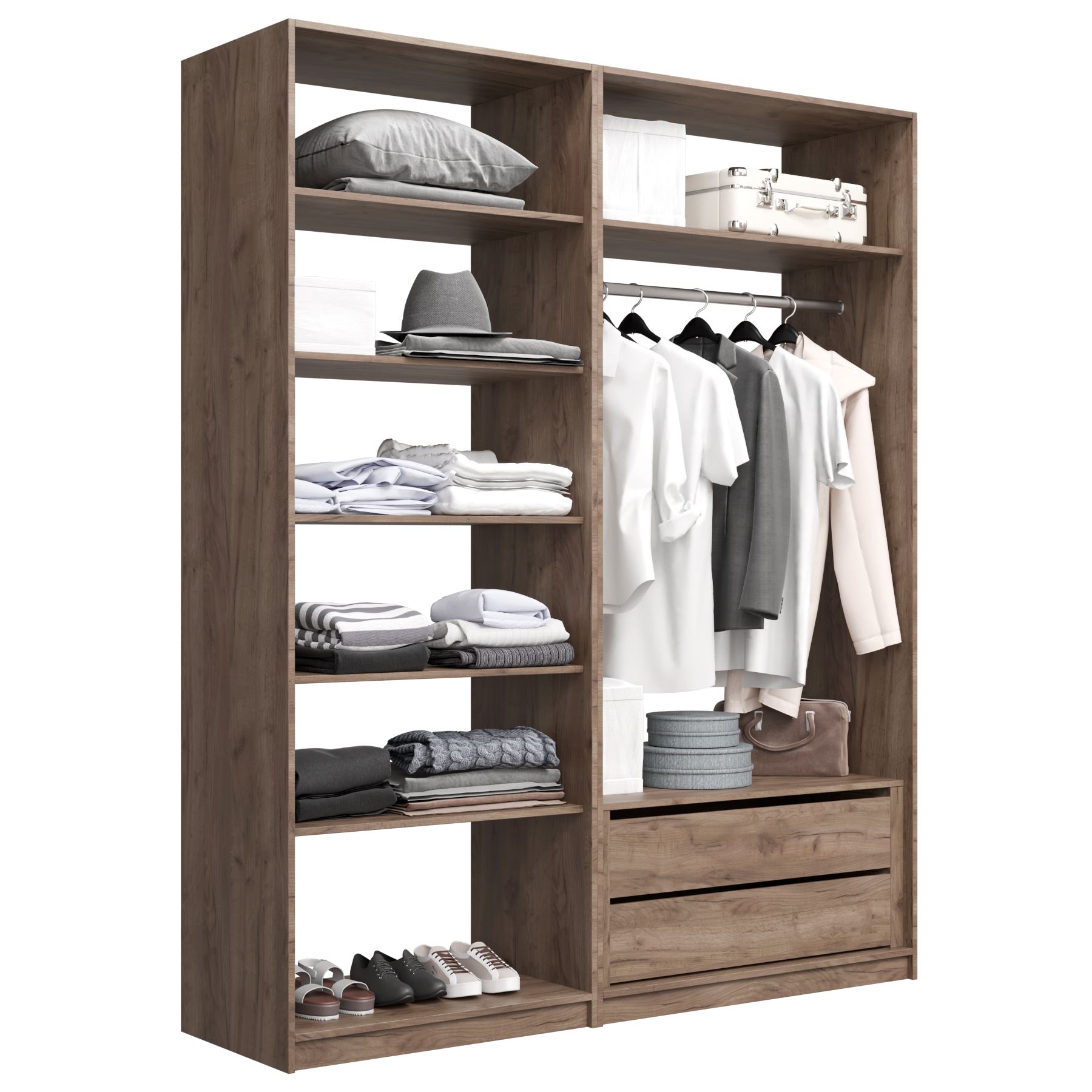 Отзывы о Столплит Прямая гардеробная система с полками и модулем MOD_COMPL Дуб/крафт/табак