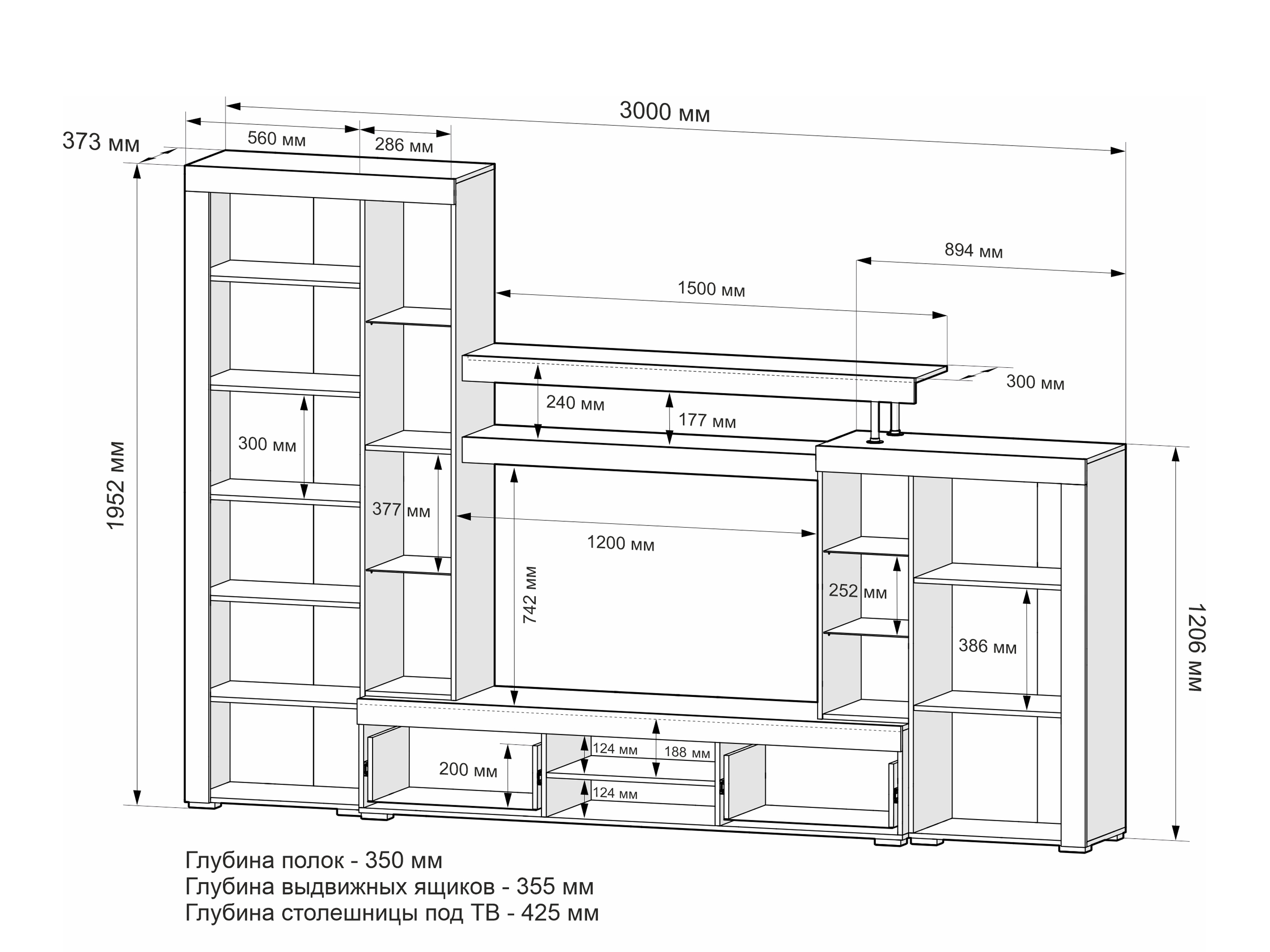 Габариты ниши под ТВ: 120 х 74,6 х 42,8 см