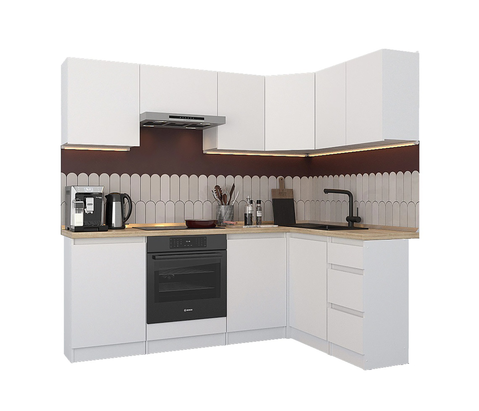 Кухонный гарнитур Леон угловой 210х140 см, белый (Белый)