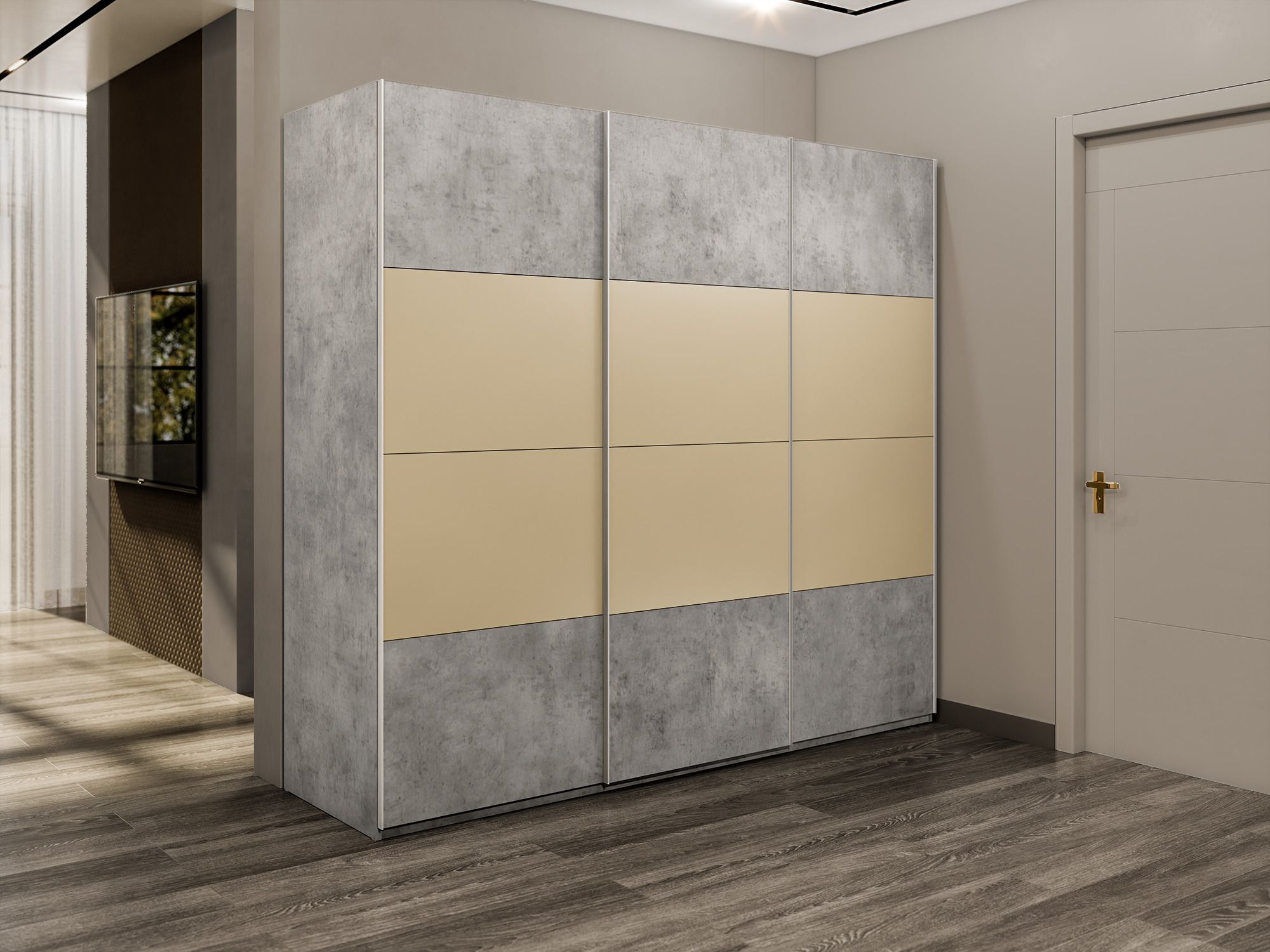 Шкаф-купе Эста 3-х дверный ДСП/Стекла фисташка/Доводчик 300х66х240 (Бетон) Код I0000408420