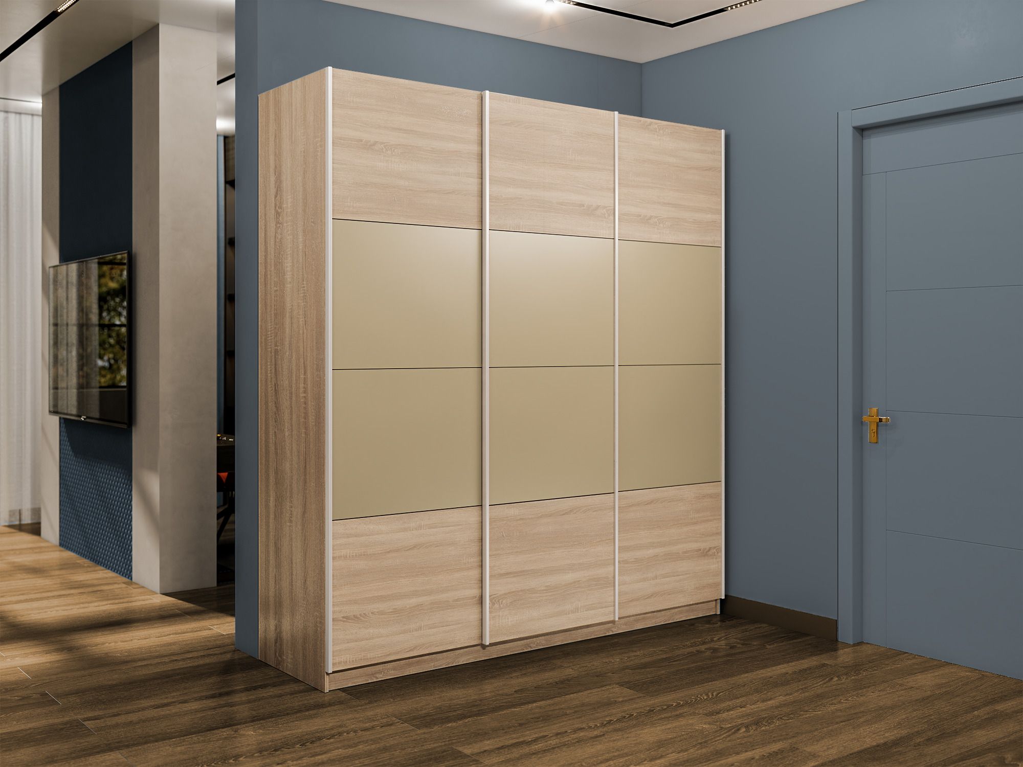 Шкаф-купе Эста 3-х дверный ДСП/Стекла фисташка/Доводчик 300х66х240 (Дуб Бардолино) Код I0000408423