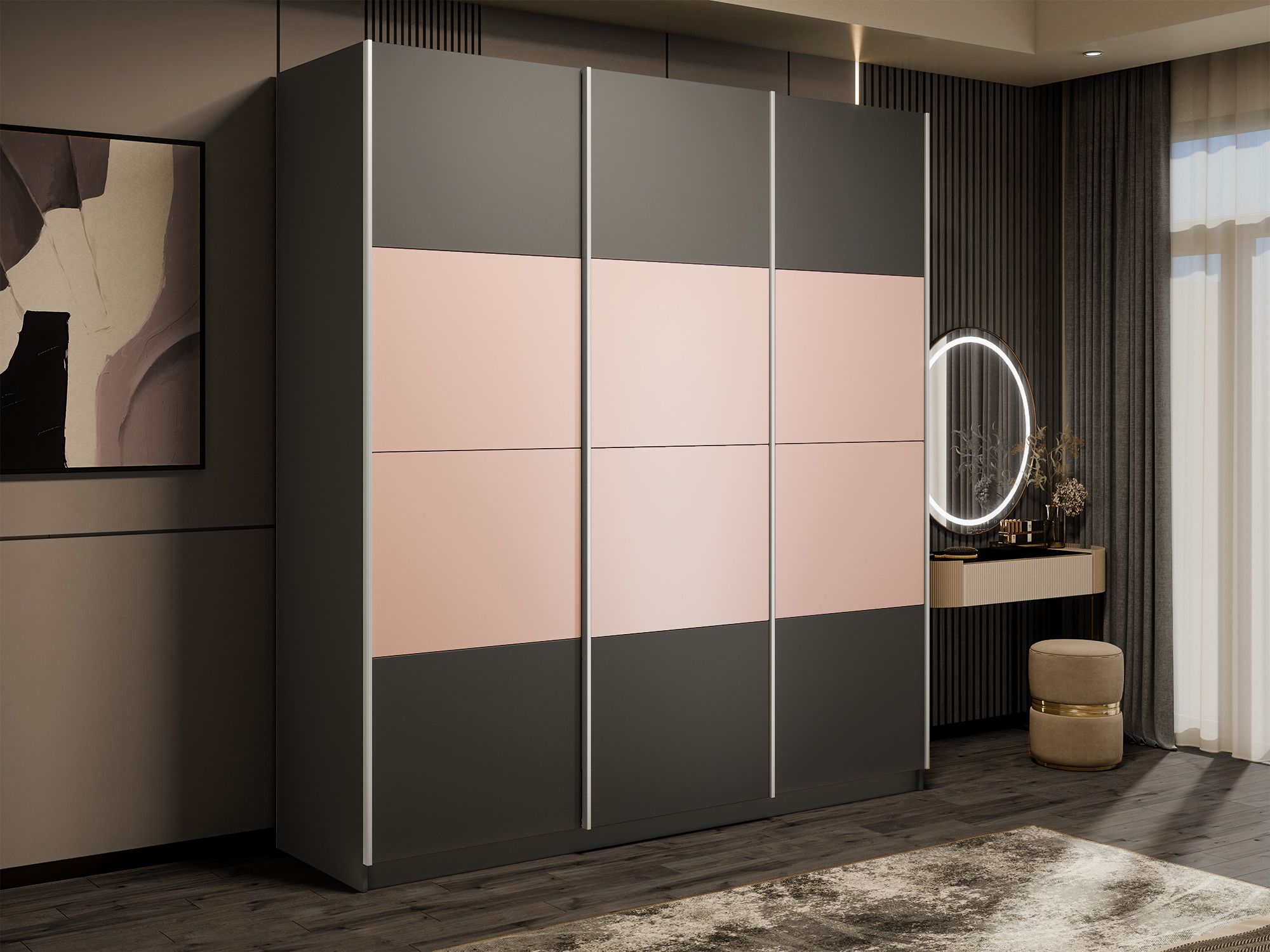 Отзывы о Столплит Шкаф-купе Эста 3-х дверный ДСП/Стекла пудра/Доводчик 240х66х240 Диамант серый