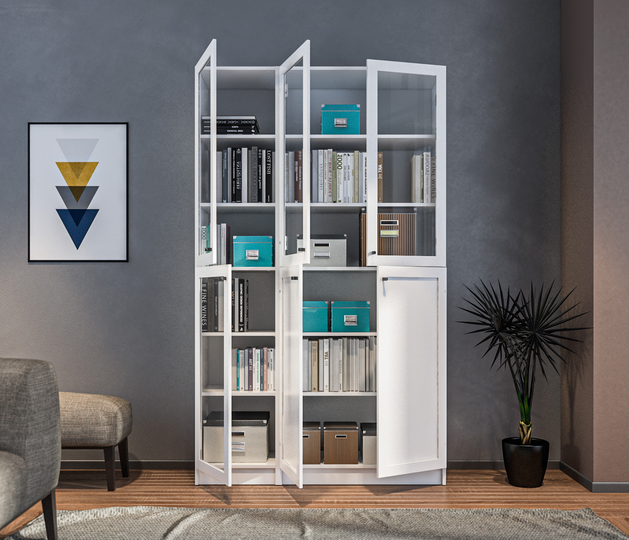 Шкаф Белый со стеклом Твин СБ-3372+СБ3373 (Белый)
