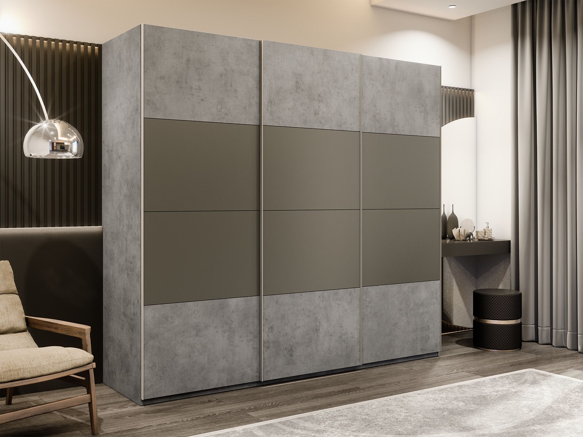 Шкаф-купе Эста 3-х дверный ДСП/Стекла хаки/Доводчик 270х66х240 (Бетон) Код I0000408480