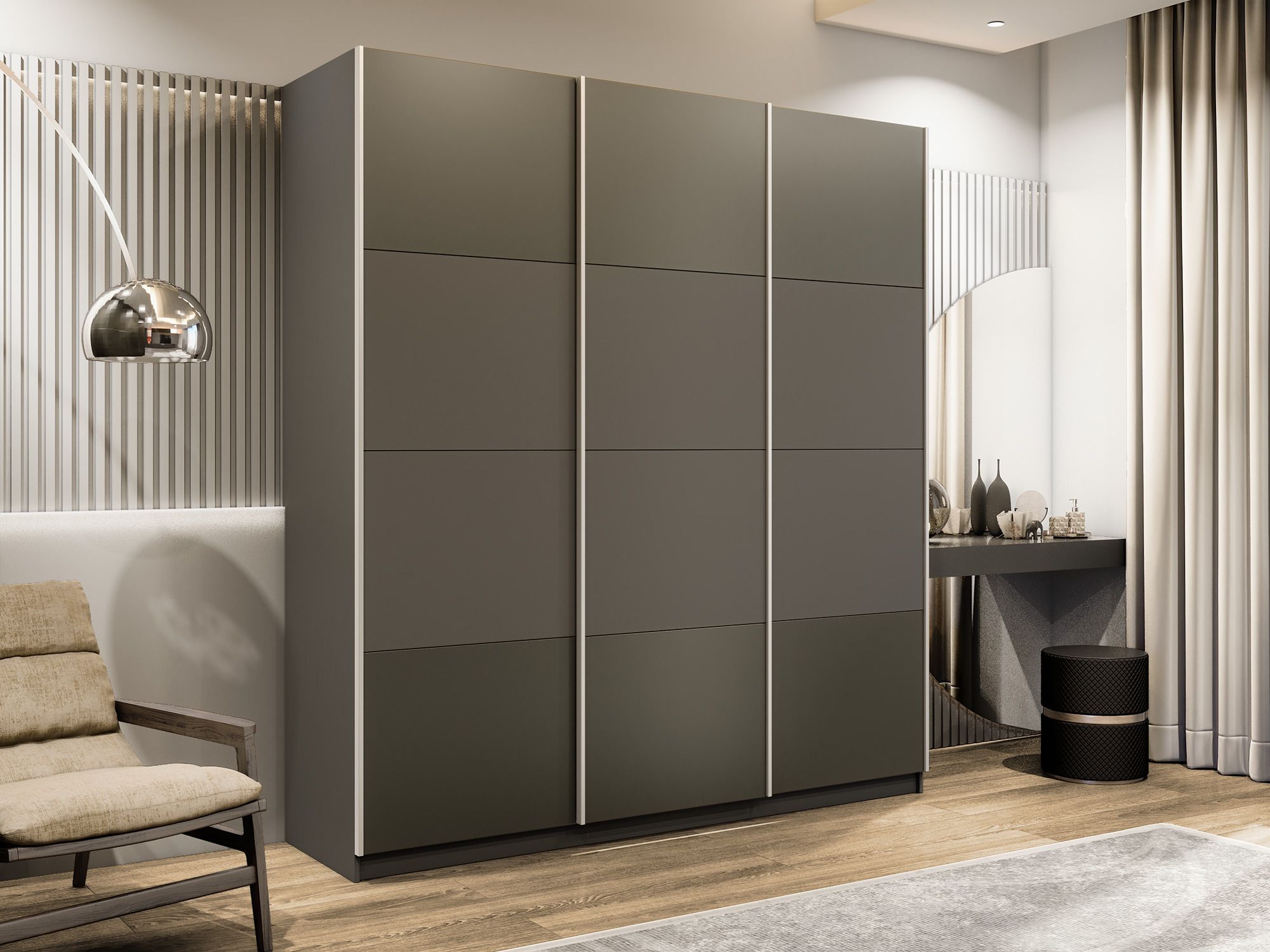 Отзывы о Столплит Шкаф-купе Эста 3-х дверный ДСП/Стекла хаки/Доводчик 270х66х240 Диамант серый
