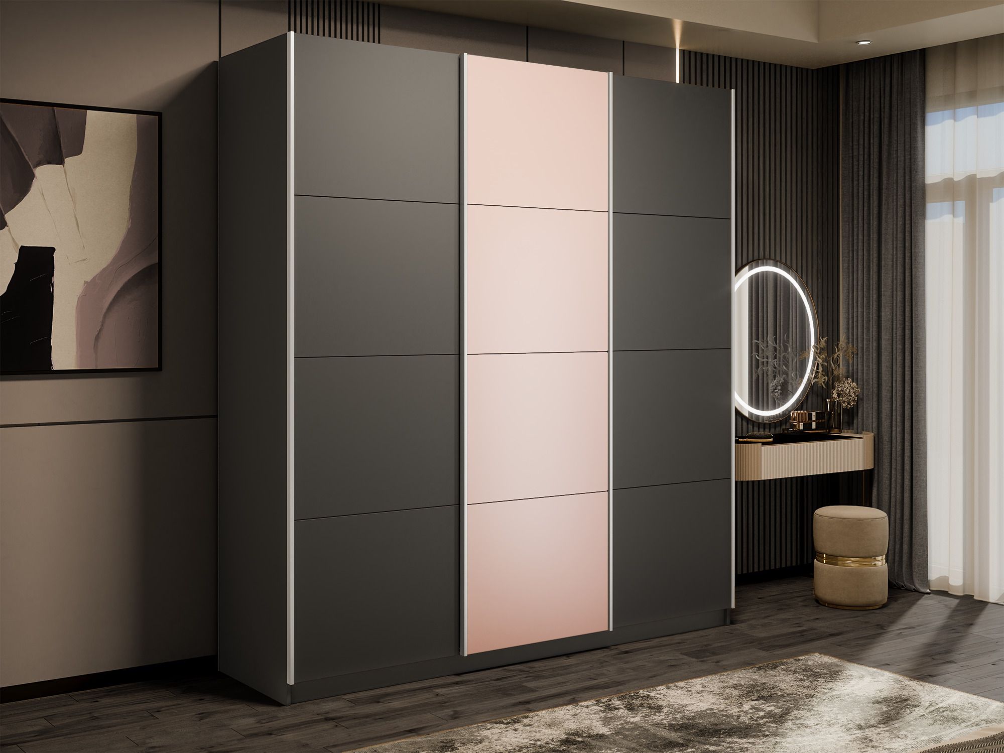 Отзывы о Столплит Шкаф-купе Эста 3-х дверный ДСП/Стекла пудра/Доводчик 300х66х240 Диамант серый