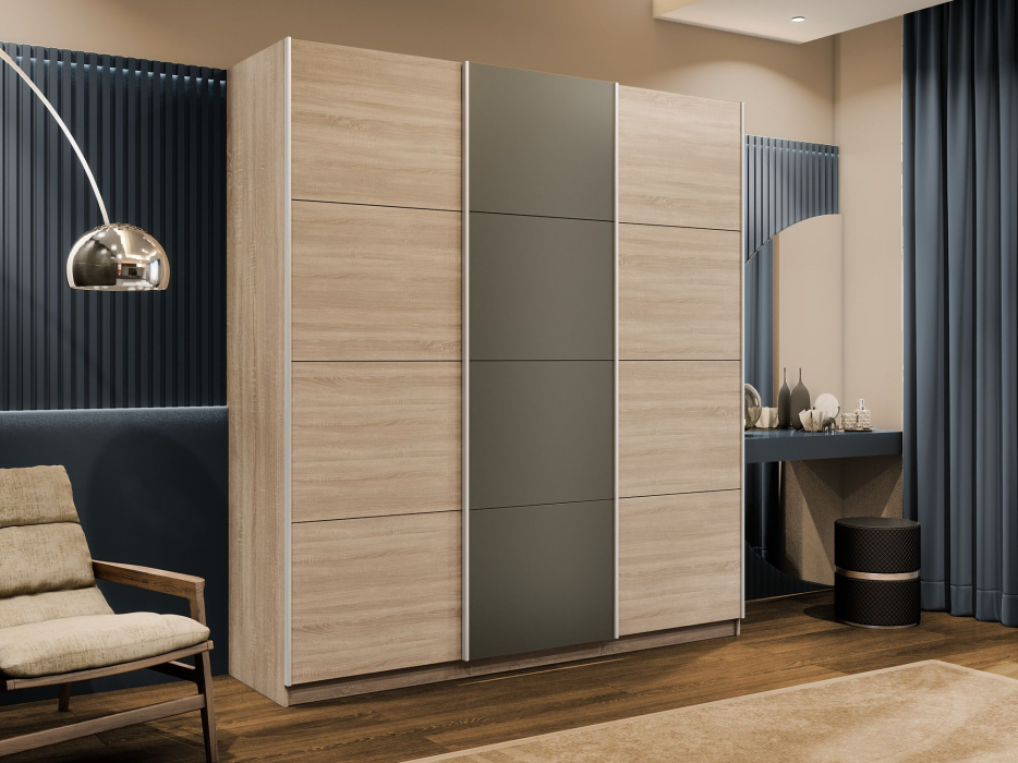 Отзывы о Столплит Шкаф-купе Эста 3-х дверный ДСП/Стекла хаки/Доводчик 240х66х240 Дуб Бардолино