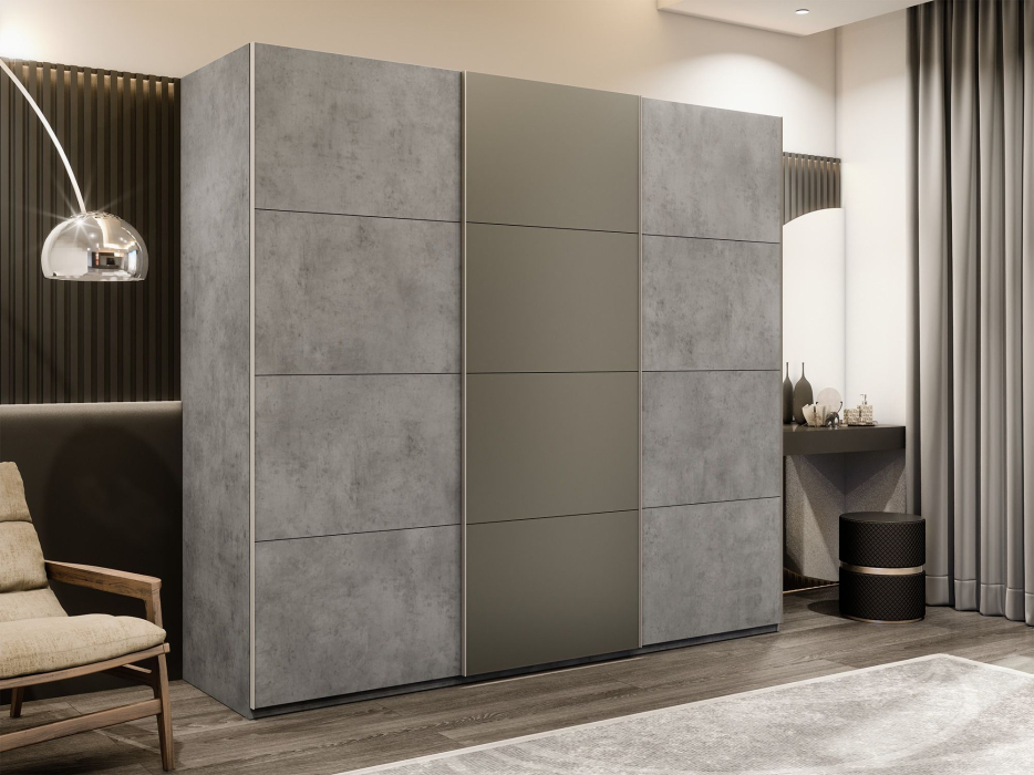 Шкаф-купе Эста 3-х дверный ДСП/Стекла хаки/Доводчик 240х66х240 (Бетон) Код I0000408684