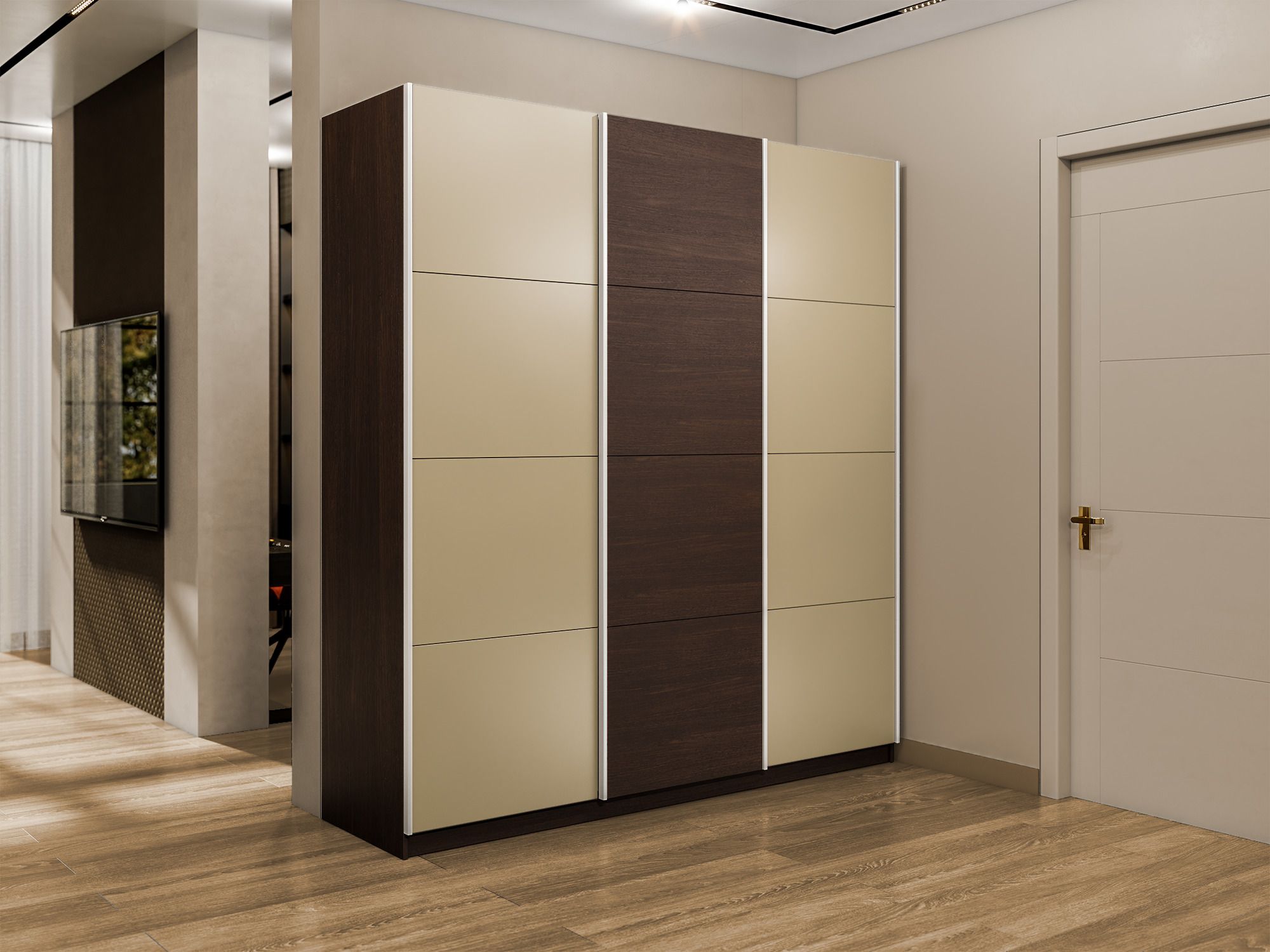 Шкаф-купе Эста 3-х дверный ДСП/Стекла фисташка/Доводчик 270х66х240 (Венге мали) Код I0000408736