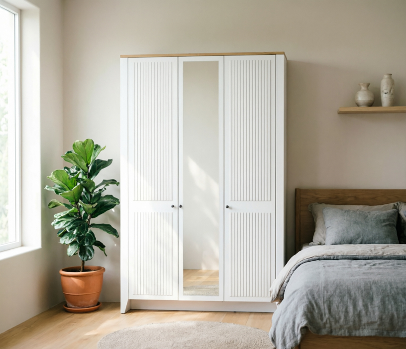 Шкаф 3х дверный Монтана СБ-3544 Белый Альпийский,Дуб Гамильтон/МДФ Дуб Белый (Белый Альпийский,Дуб Гамильтон)