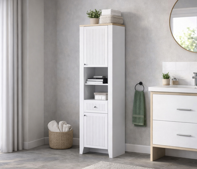 Шкаф-пенал Монтана СБ-3554 Белый Альпийский,Дуб Гамильтон/МДФ Дуб Белый (Белый Альпийский,Дуб Гамильтон)