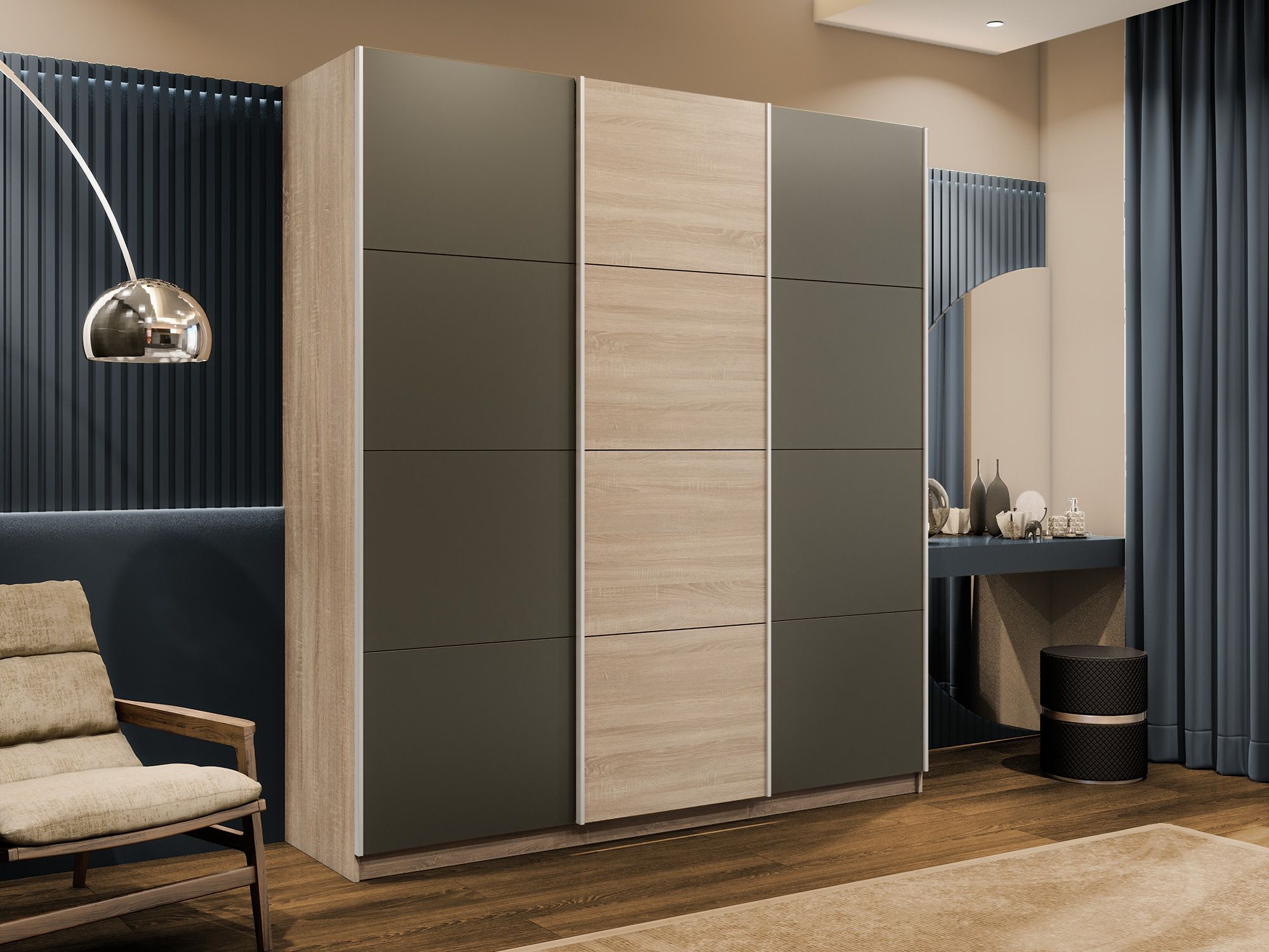 Отзывы о Столплит Шкаф-купе Эста 3-х дверный ДСП/Стекла хаки/Доводчик 240х66х240 Дуб Бардолино
