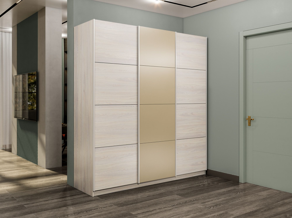Шкаф-купе Прайм 3-х дверный Стекла фисташка/ДСП/Доводчики 180х57х230 (Ясень Анкор светлый) Код I0000409042
