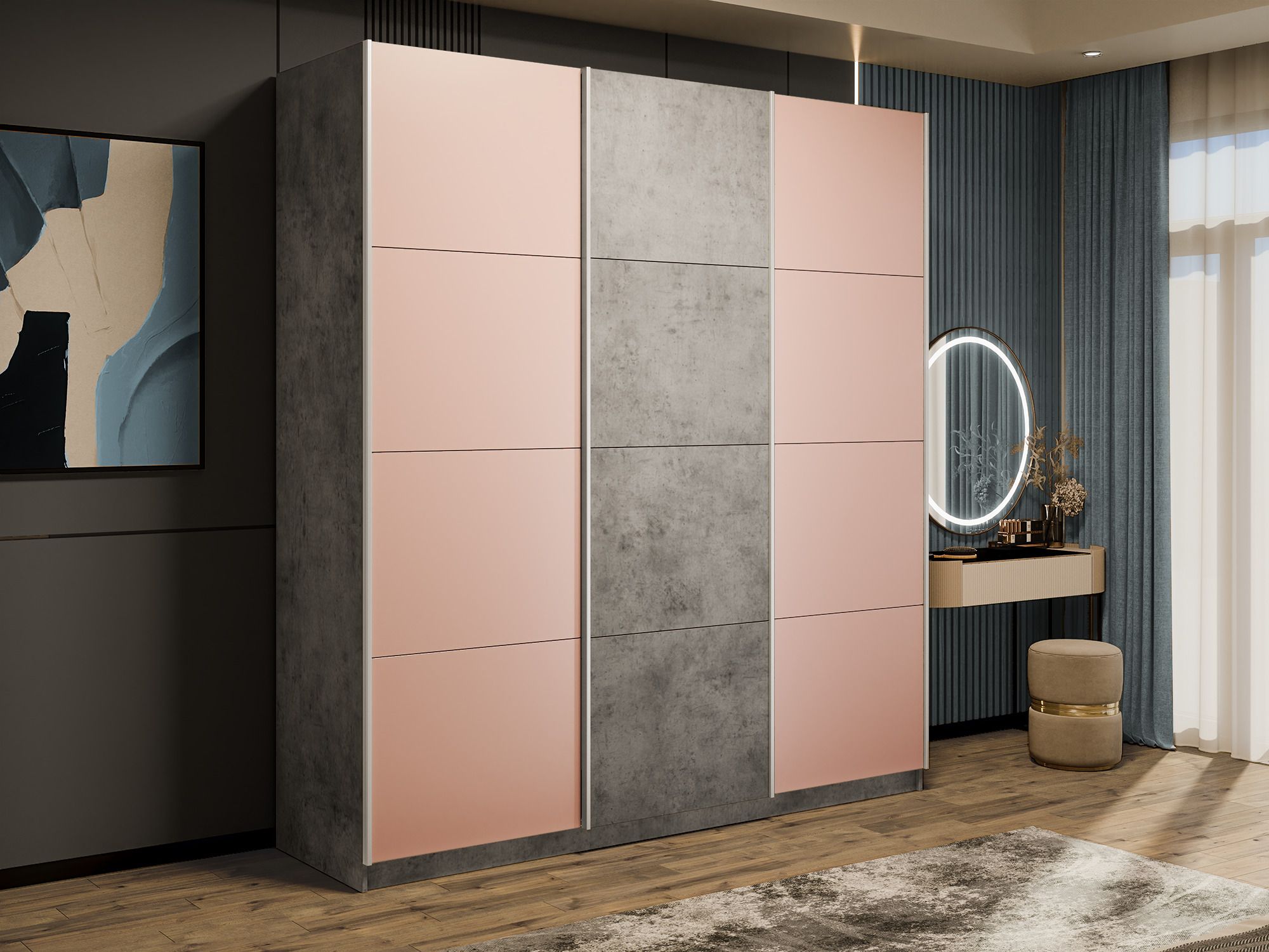 Отзывы о Столплит Шкаф-купе Прайм 3-х дверный Стекла пудра/ДСП/Доводчики 180х57х230 Бетон