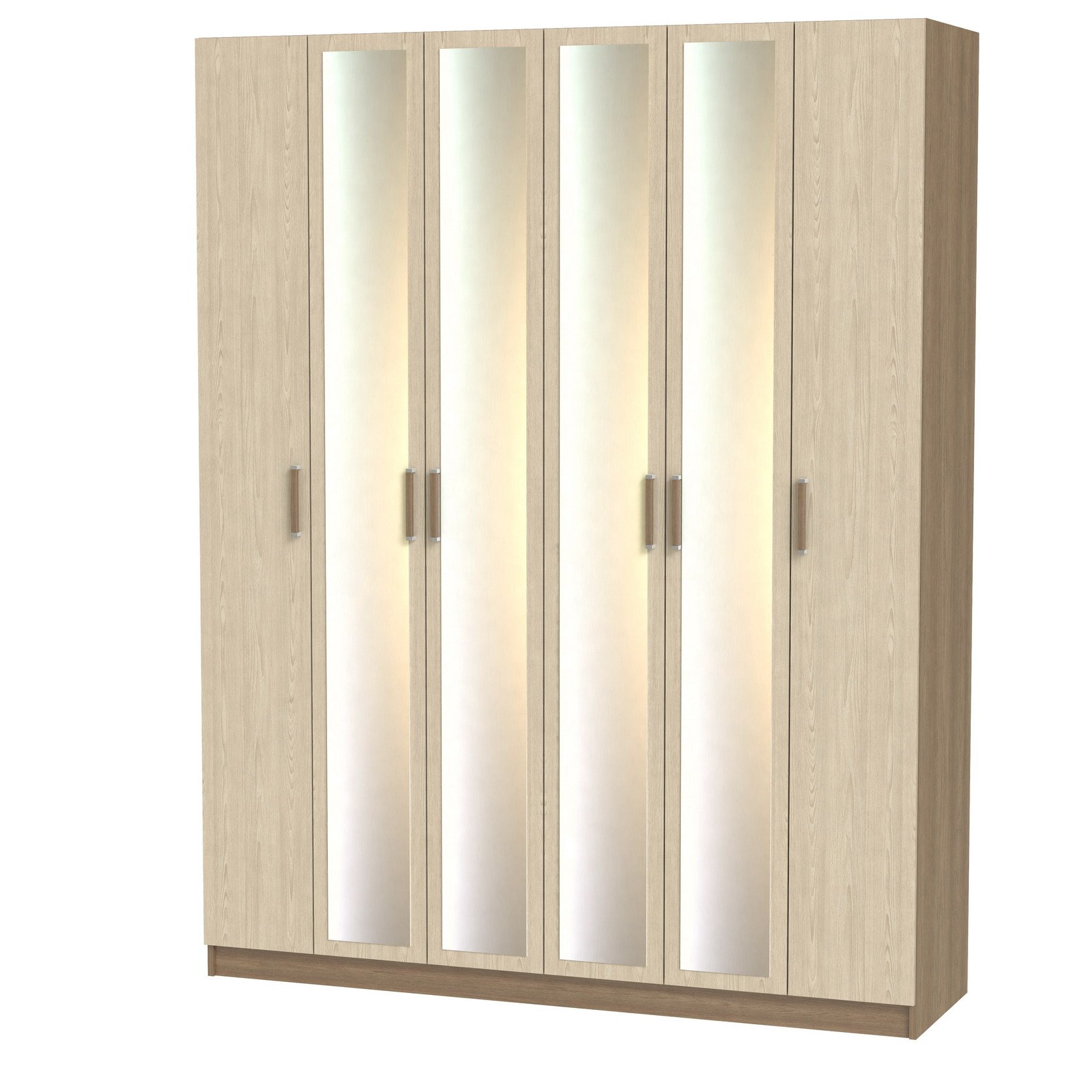 Феникс М-16 Корпус шкафа выполнен из Ламинированной ЛДСП высокого качества с насыщенным цветом. .Шириною 180 см., красивый, удобный и очень функциональный 6-ти створчатый шкаф.Четыре средние двери оснащены зеркалами.За дверьми располагаются множество полок и есть ниши со штангой.