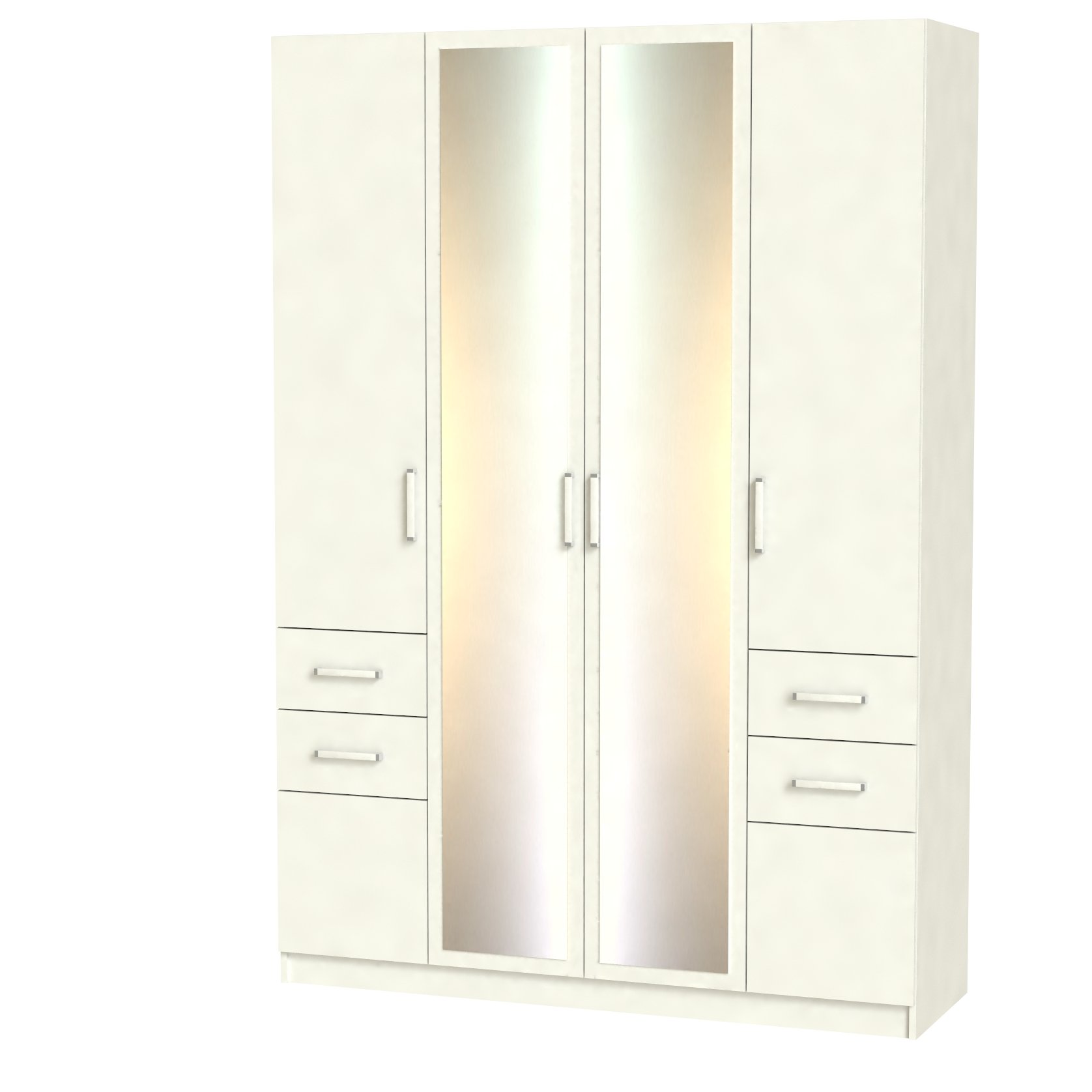 Феникс М-14 Корпус шкафа выполнен из Ламинированной ДСП высшего качества с насыщенным цветом. В данной моделе используются зеркала.Шириною 160 см., красивый четырехстворчатый шкаф. В центре 2 большие двери с зеркалами, за ними расположено большое отделение со штангой. Слева Ниша с небольшой штангой и ещё одна маленькая для сложенных вещей. Справа четыре таких же ниши. Внизу симметрично с каждой стороны располагается по два выдвижных ящика и по одному отделению закрытому на небольшую дверцу. Зеркала входят в стоимость шкафа.