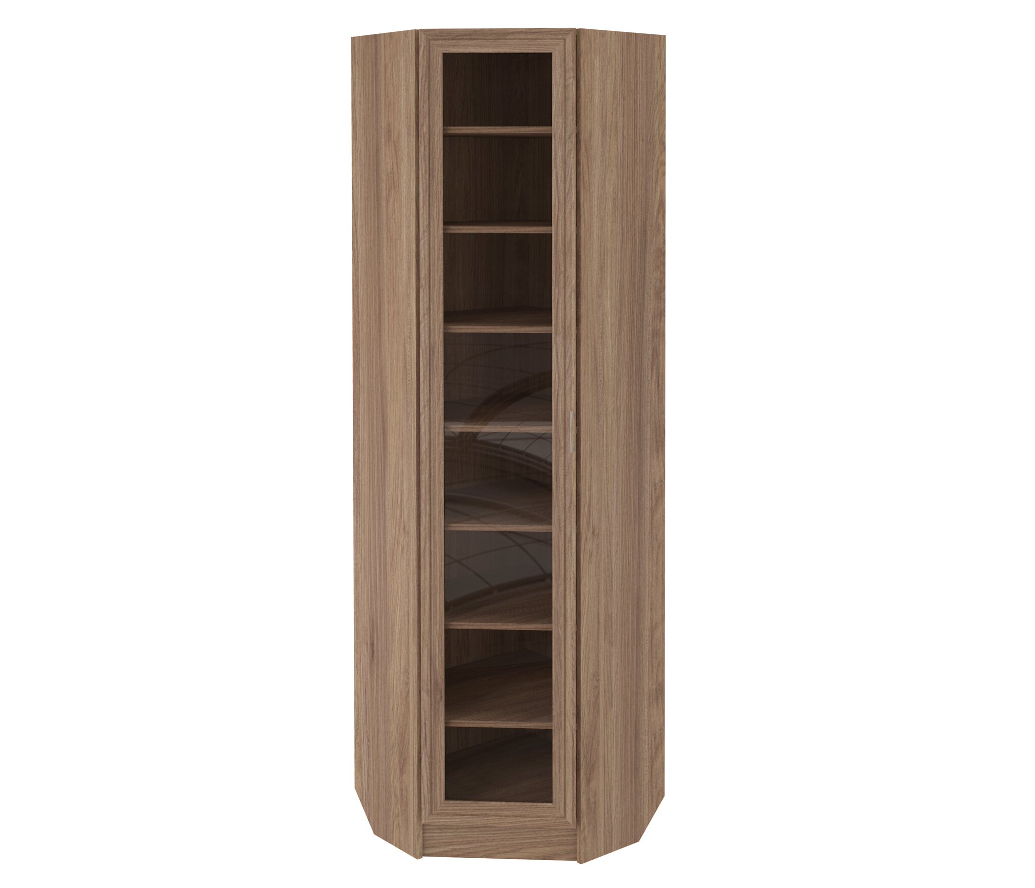 Шкаф угловой ШК-1/6 со стеклом выполнен из Ламинированной ДСП высокого качества с насыщенным цветом. Фасады выполнены из материала МДФ и дополнительно укреплены изнутри специальными креплениями для повышения прочности.Изделие имеет 7 полок, что в совокупности дает 8 ниш, расположенных за распашной дверкой.Данный шкаф рассчитан для книг, учебных пособий, каталогов или медицинских карт. Отлично подойдет для учебных или мед учреждений, выставочной или торговой площади. Так же данный шкаф уместно будет поставить в спортивных секциях для хранения наград и кубков участников соревнований.Изделие можно устанавливать как отдельно, так и в комплекте с другими модулями данной библиотеки.