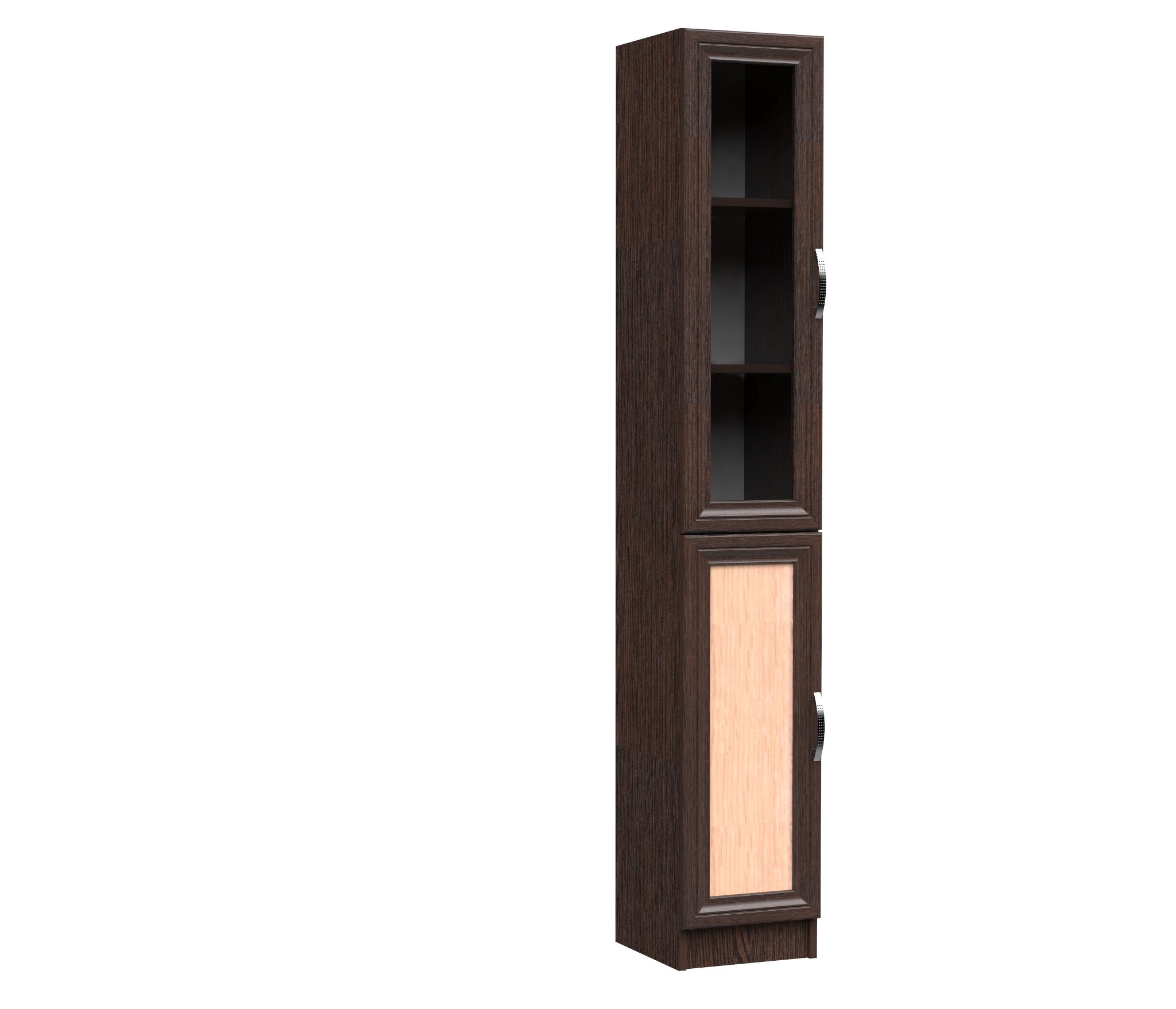 Шкаф ШК-1/7-1800 выполнен из Ламинированной ДСП высокого качества с насыщенным цветом. Верхний Фасад Стеклянный в рамке МДФ.Нижний глухой.Шириною 30 см.выс 180 см,глубина 32 см., этот распашной пенал оснащён 3-мя полками,две из них съёмные.Верхняя дверь выс 95 см,нижняя 75.6 см.Может применяться для разных вещей и посуды.Стекло тонированное.