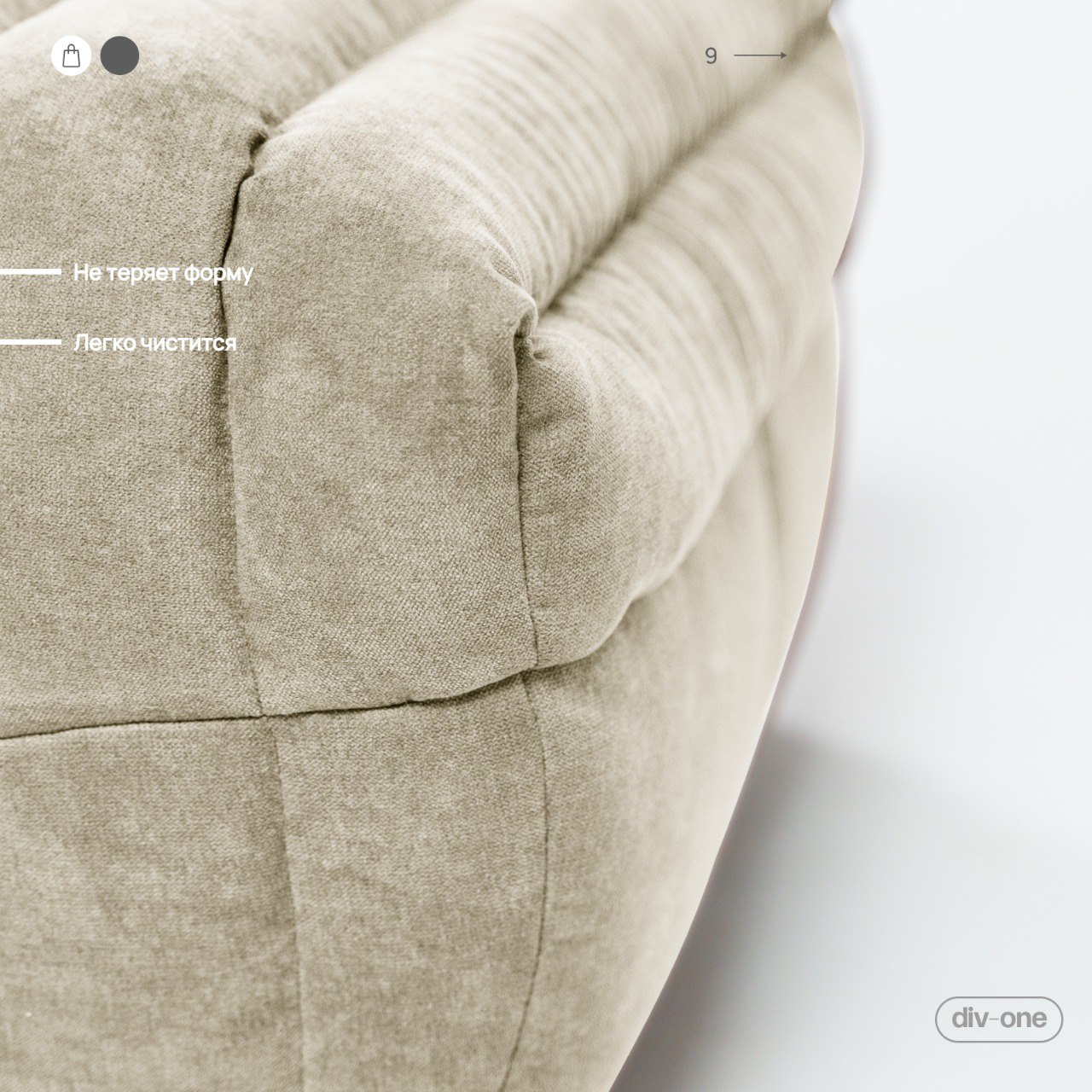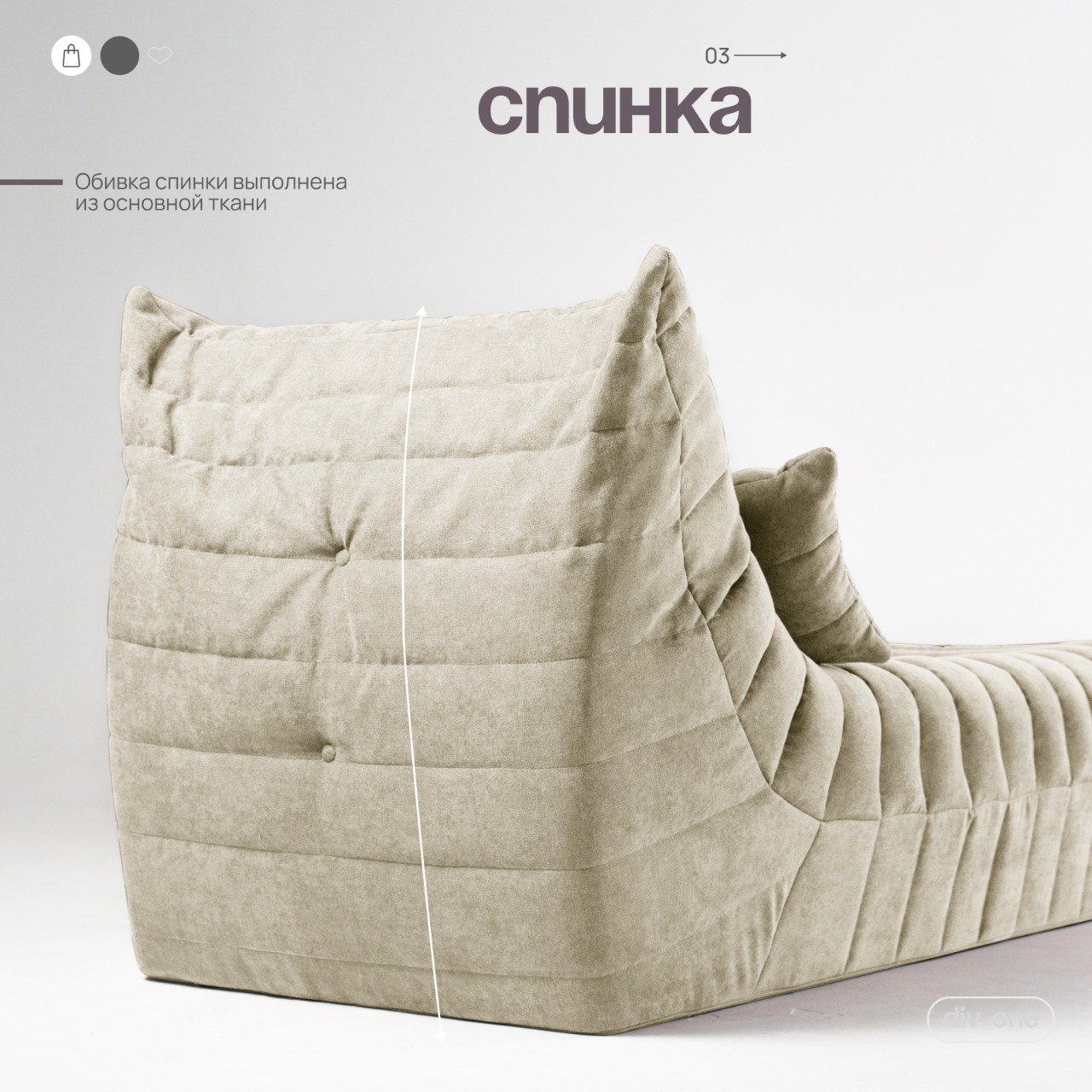 Бескаркасный диван Говард с оттоманкой — это универсальный предмет мебели, который подойдет для любой комнаты. Он отлично впишется в интерьер спальни, гостиной, детской или даже кухни.
