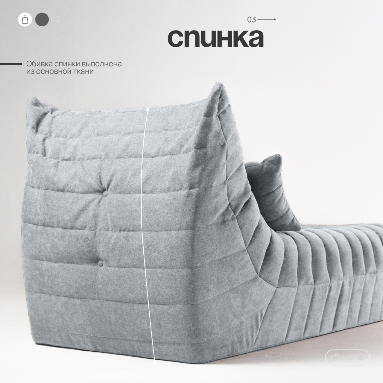 Бескаркасный диван Говард с оттоманкой — это универсальный предмет мебели, который подойдет для любой комнаты. Он отлично впишется в интерьер спальни, гостиной, детской или даже кухни.