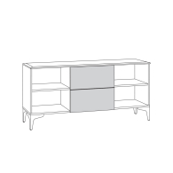 Тумба под ТВ Валенсия 16.45 оснащена двумя выдвижными ящиками по центру и нишами с полкой за распашными дверками по краям.