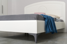 Кровать установлена на высокие ножки, благодаря чему смотрится воздушной.