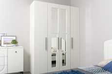 Фасады выполнены из МДФ с матовой ПВХ-плёнкой. Такое решение делает мебель визуально более "мягкой", комфортной и расслабляющей, что особенно актуально для спальни.