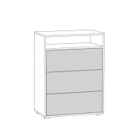 Комод имеет верхнюю открытую нишу и три выдвижных ящика для одежды, вещей, игрушек, документов и всего, что Вы захотите хранить в комоде. Корпус и фасады мебели изготовлены из экологически чистой ламинированной ДСП 16 мм., торцы окромлены ПХВ плёнкой 0,4 мм. Лицевая фурнитура выполнена из черного пластика. Выдвижные ящики на шариковых направляющих полного выдвижения обеспечивают длительную и тихую эксплуатацию.