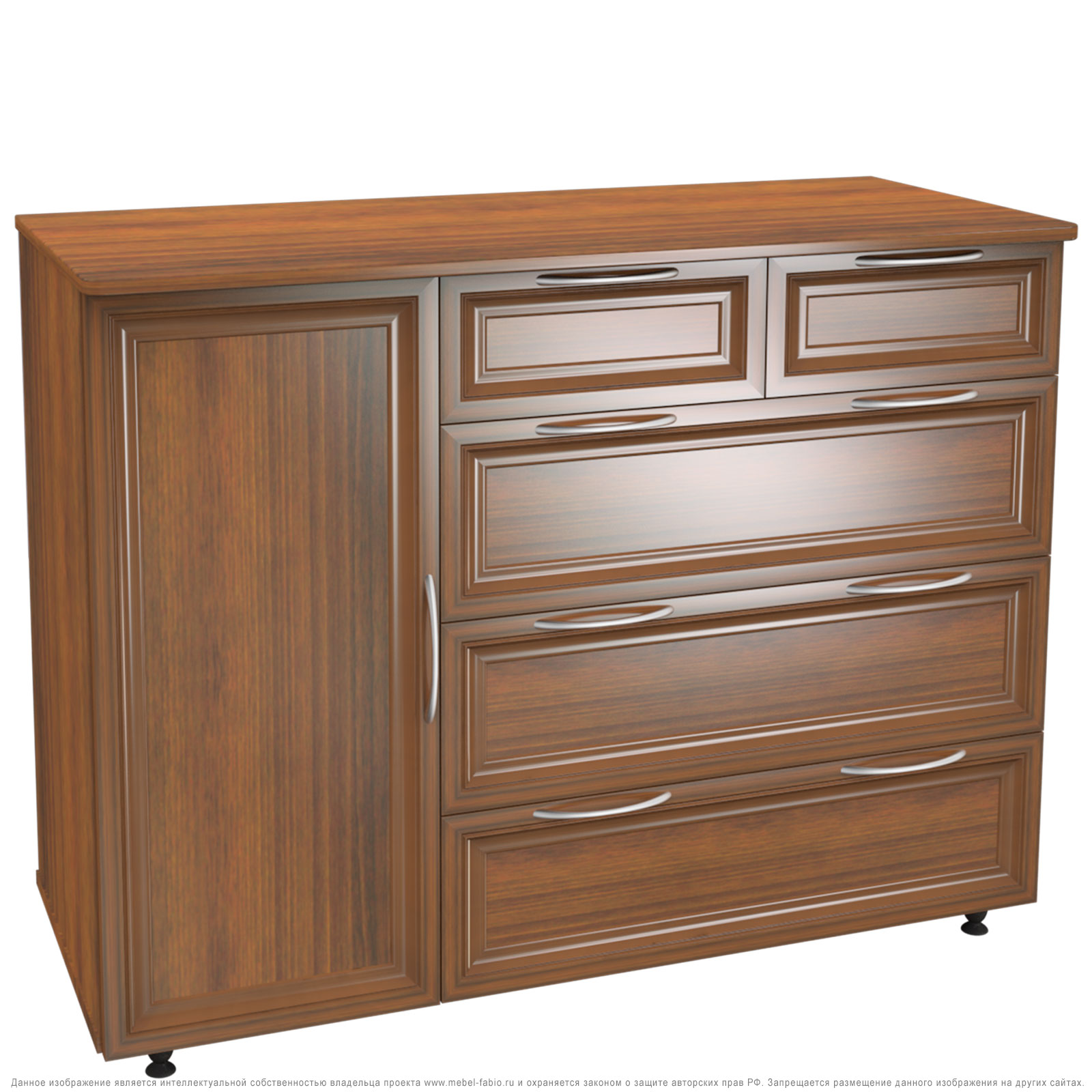 Комод 7 отличается большими размерами и многофункциональностью.3 больших+2 маленьких выдвижных ящика,позволят разместить множество вещей.Дверь,скрывающая полку,позволяет разместить более крупные вещи.Корпус из высококачественного ЛДСП,фасады рамочные МДФ.Производитель сохраняет за собой право менять фурнитуру.
