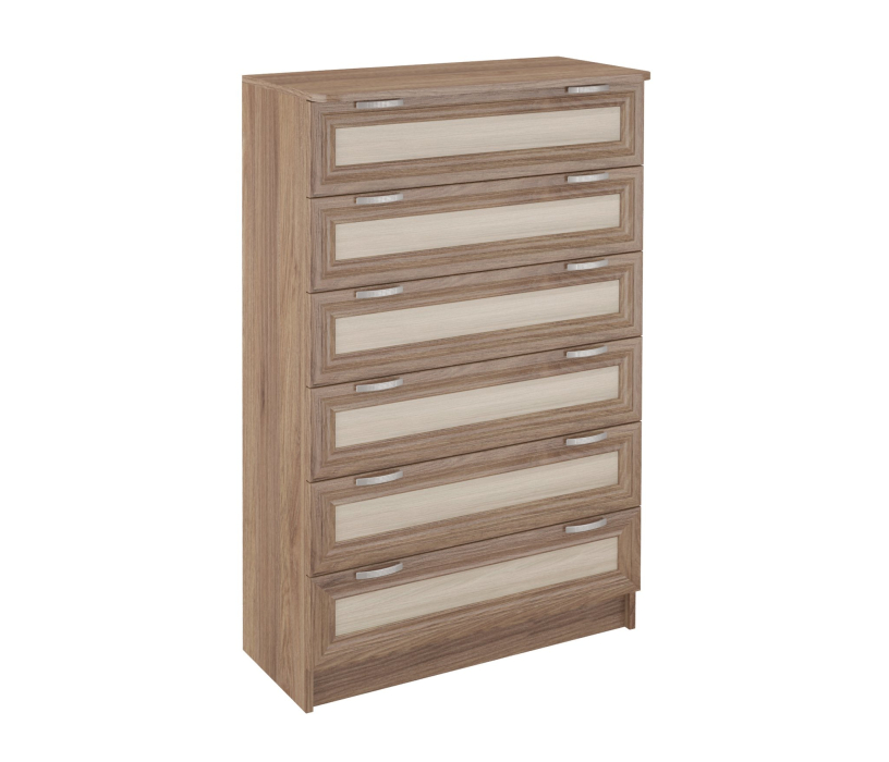 Комод ВС 6 удобен в использовании благодаря размерам.Позволяет разместить множество вещей.Оснащён 6-ю одинаковыми по размеру выдвижными ящиками.Корпус ЛДСП,фасады рамочные МДФ.Производитель оставляет за собой право менять фурнитуру.