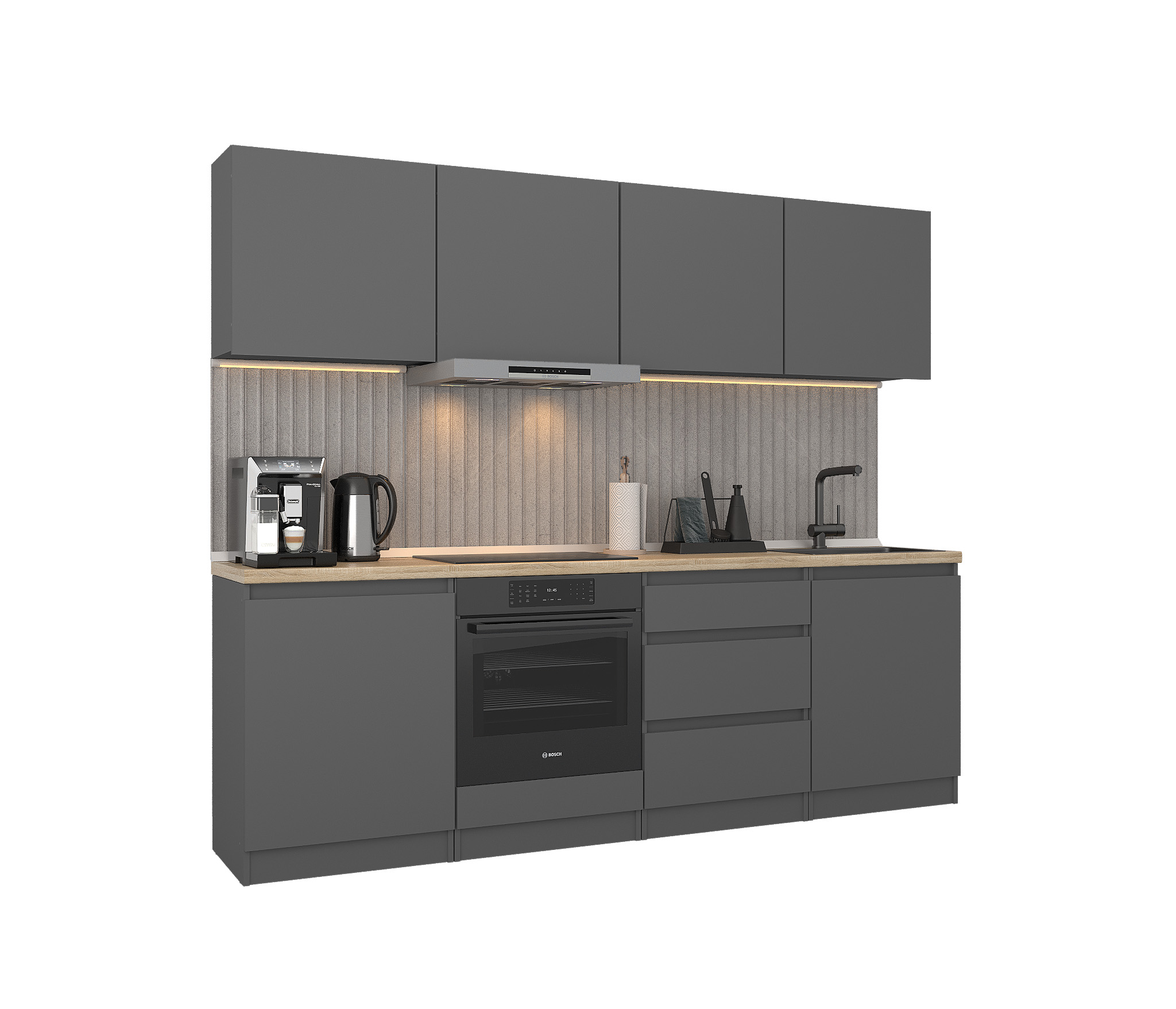 Кухонный гарнитур Леон прямой 240 см, диамант серый Код 00000334968