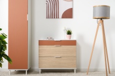 Конструкция с глухой распашной дверцей. Внутри шкаф оборудован полками или штангой.