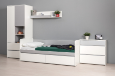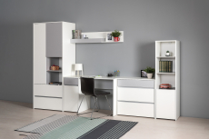 Полка представляет из себя классическую открытую двухуровневую полку с задней панелью. Полка позволит разместить молодёжные аксессуары - знаковые мелочи, подчёркивающие индивидуальность подростка. Универсальная сборка - можно собрать на любую сторону. Базовый белый цвет, сочетаясь с акцентным серым, создаёт нейтральную основу интерьера, чтобы подчеркнуть личные вещи и аксессуары. Корпус и фасад полки изготовлены из экологически чистой ламинированной ДСП 16 мм, торцы окромлены ПХВ плёнкой 0,4 мм.