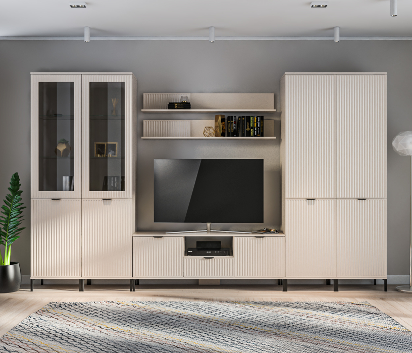 Набор для гостиной с двумя витринами Турин Кашемир серый/МДФ Кашемир Код 00000335353