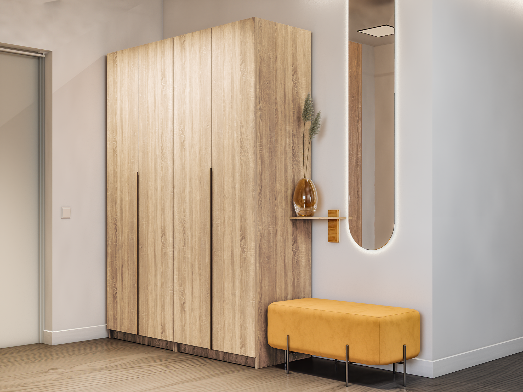Идеально подойдет не только к вашему спальному гарнитуру, прихожей и детской, но и будет гармонично сочетаться со всеми элементами мебели. Не займет много места, но позволит вместить большое количество вещей. Внутреннее наполнение шкафа позволяет вместить не только верхнюю одежду и обувь, но и аксессуары. А удобное разделение секций поможет грамотно разместить все вещи в шкафу.