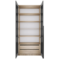 Шкаф распашной Е1 Локер 101x52.5x220 см, с черным стеклом , полками и модулем Код I0000426766
