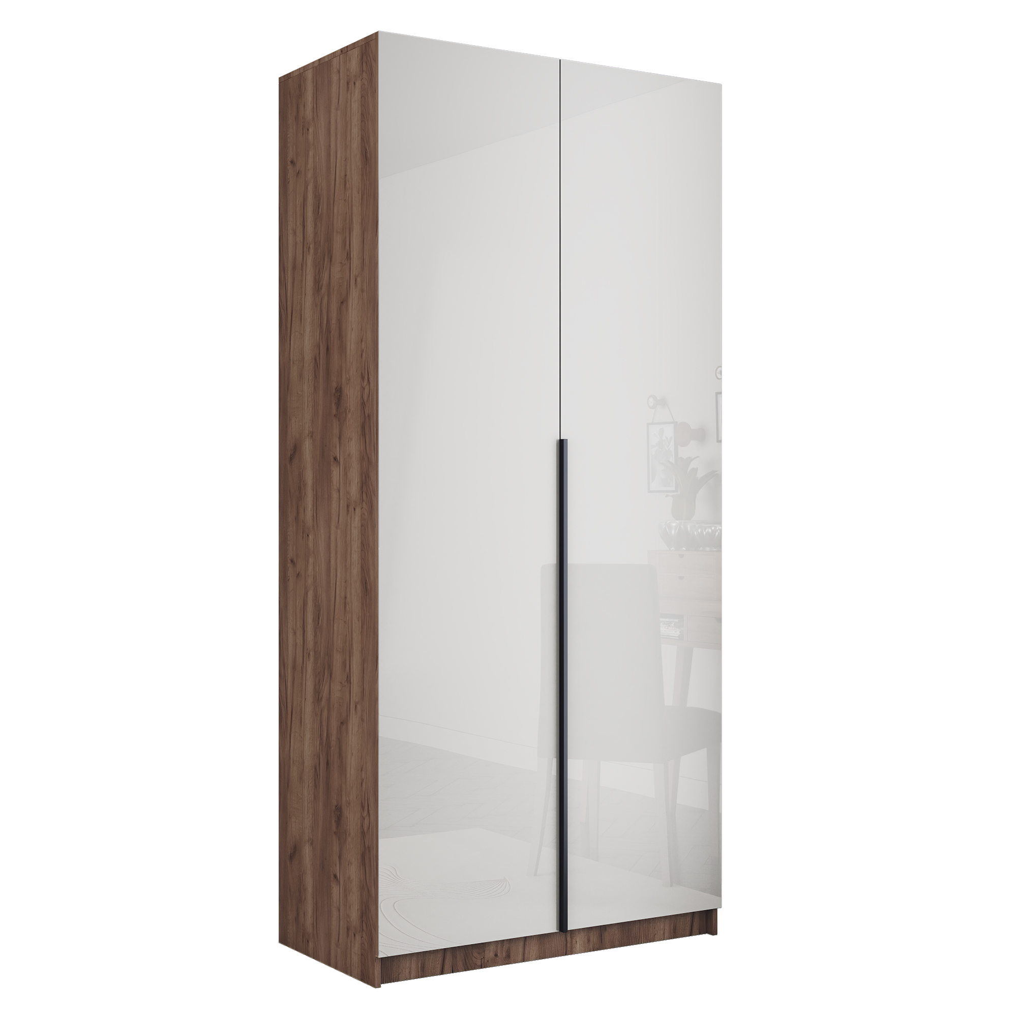 Шкаф распашной Е1 Локер 101x52.5x220 см, с белым стеклом и модулем (Дуб/крафт/табак)