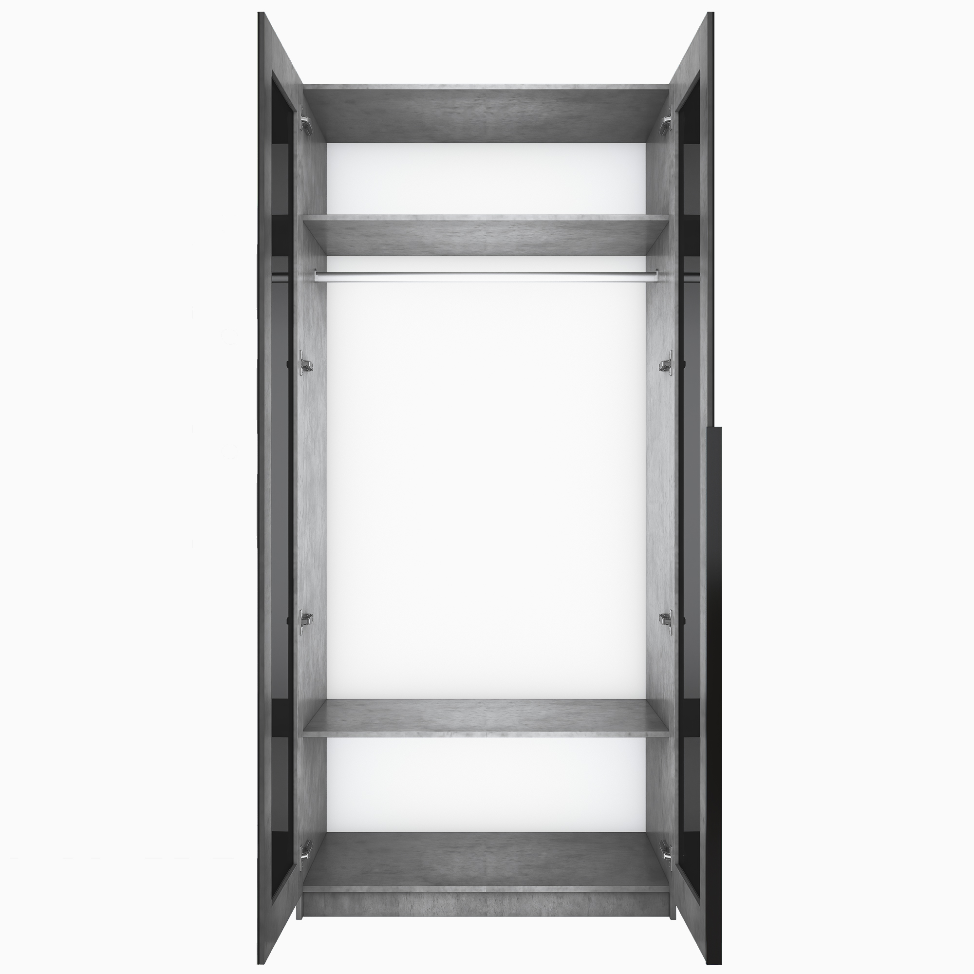 Шкаф распашной Е1 Локер 101x52.5x220 см, с черным стеклом (бетон)