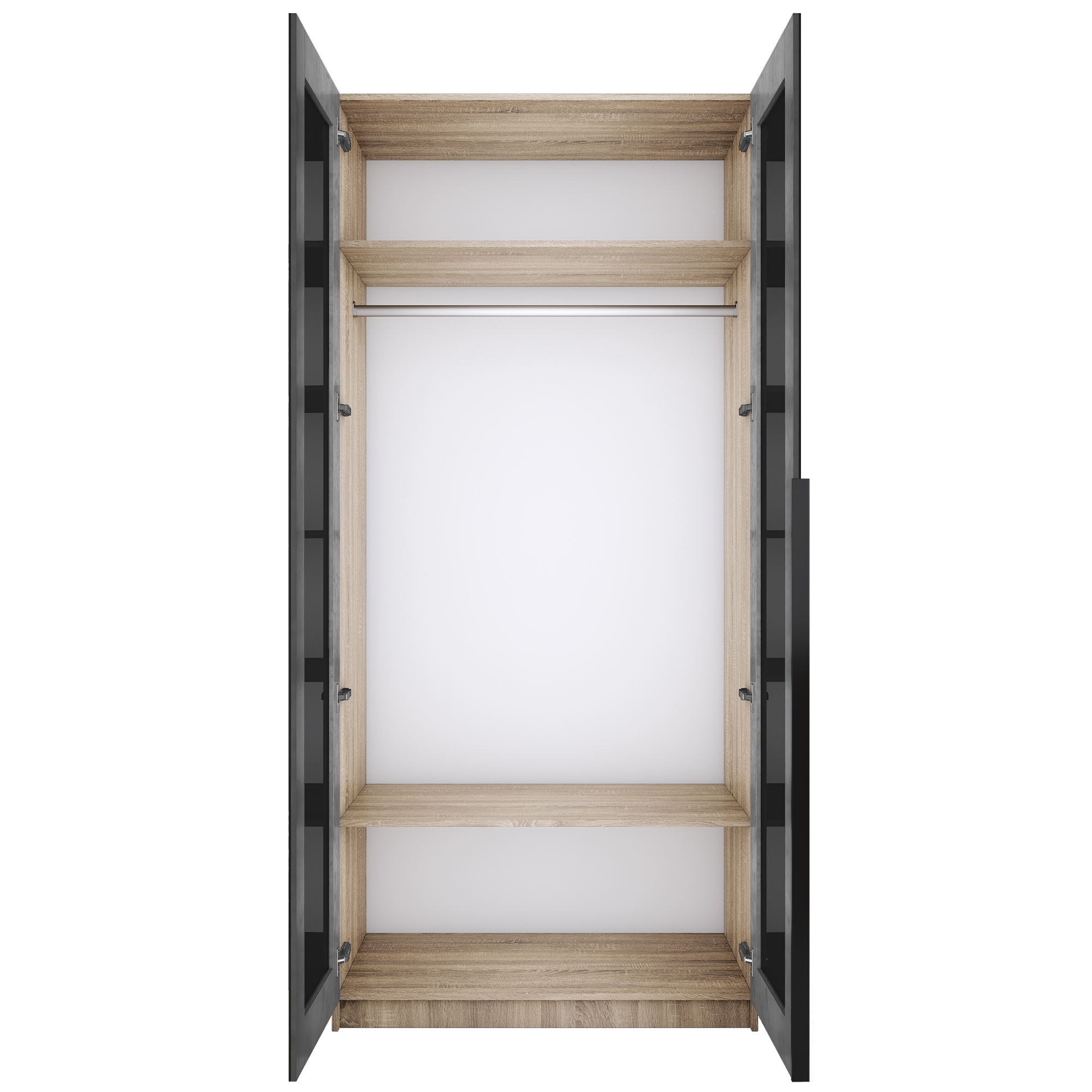 Шкаф распашной Е1 Локер 101x52.5x220 см, с черным стеклом (Дуб сонома) Код I0000426770