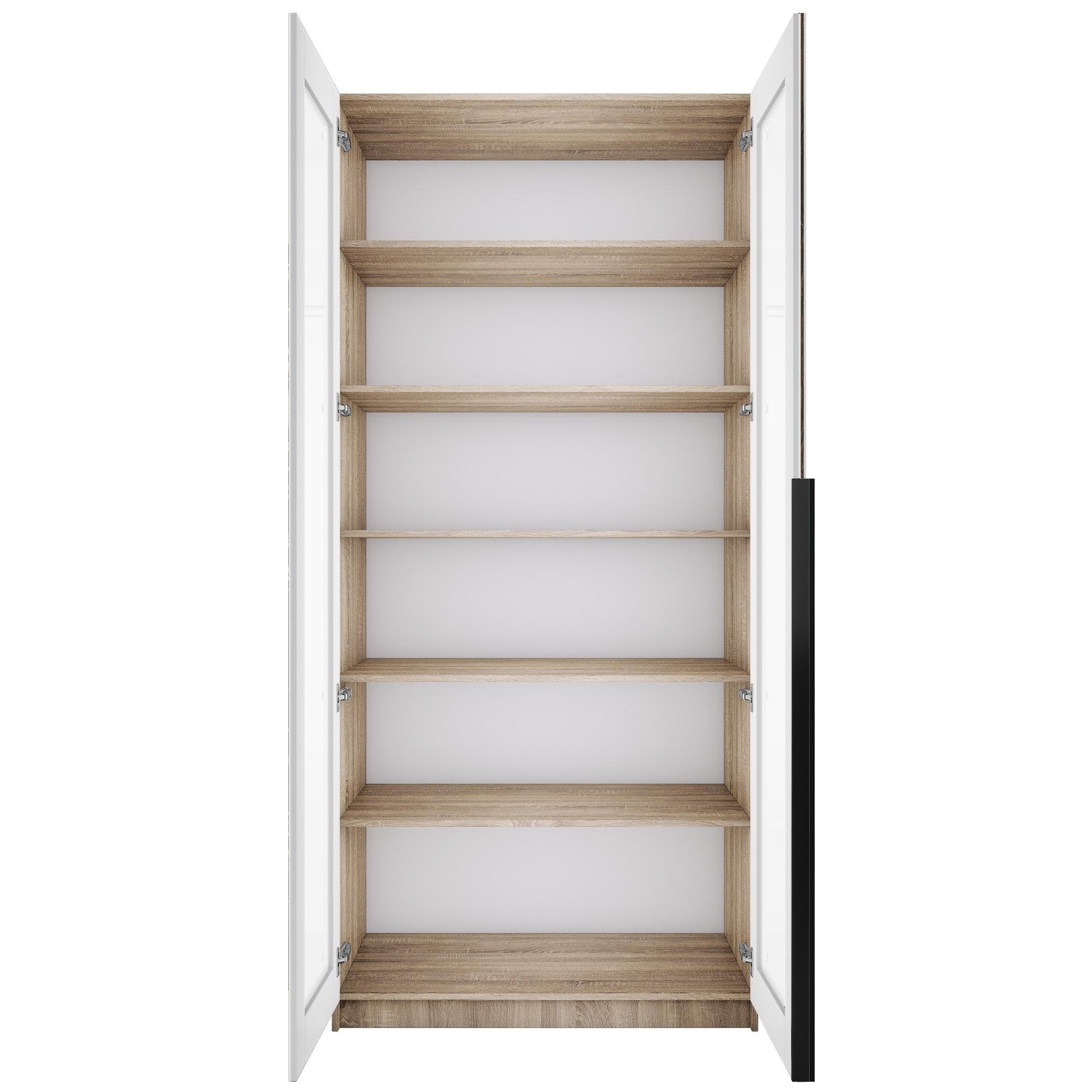 Шкаф распашной Е1 Локер 101x52.5x220 см, с белым стеклом и полками (Дуб сонома)