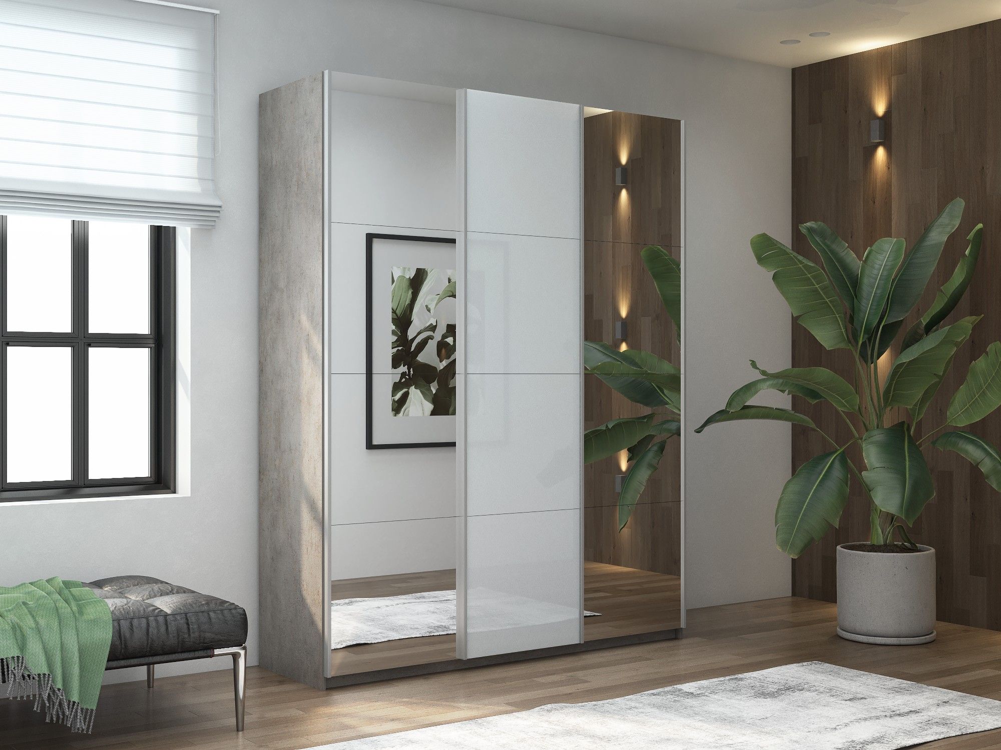 Отзывы о Столплит Шкаф-купе Прайм 3-х дверный Зеркала/Стекло белое/Доводчики 180х57х230 бетон