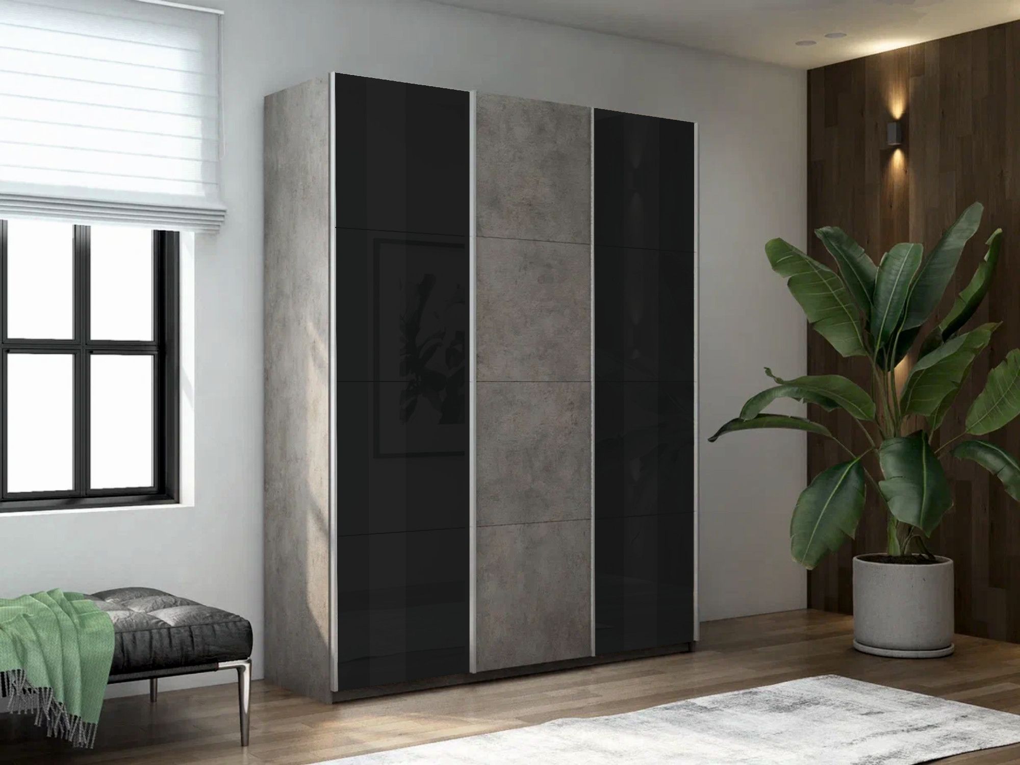 Отзывы о Столплит Шкаф-купе Прайм 3-х дверный Стекла черные/ДСП/Доводчики 180х57х230 бетон